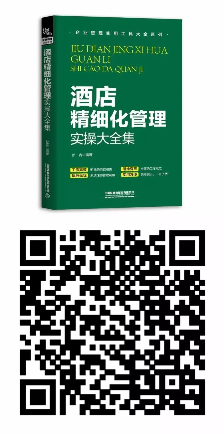 本书对酒店的前厅部、客房部、康乐部、财务部、工程部、公关营销部、餐饮部、安全保卫部、行政人事部等部门进行了区分部门、细分工作环节的工作规范化的系统阐述,书中包括岗位职责、工作制度模版、工作细节规范及实用表格等内容。具有可操作性、工作指导性强等特点。是酒店管理人员进行高效率、规范化管理和迅速提升下属工作专业水平的参照范本,为绩效管理提供依据。全书实行表格化编写方式,并在每项工作规范处均设有备注表格,使之在很大限度地满足不同类型酒店使用需要,增强本书与您工作的切合度。