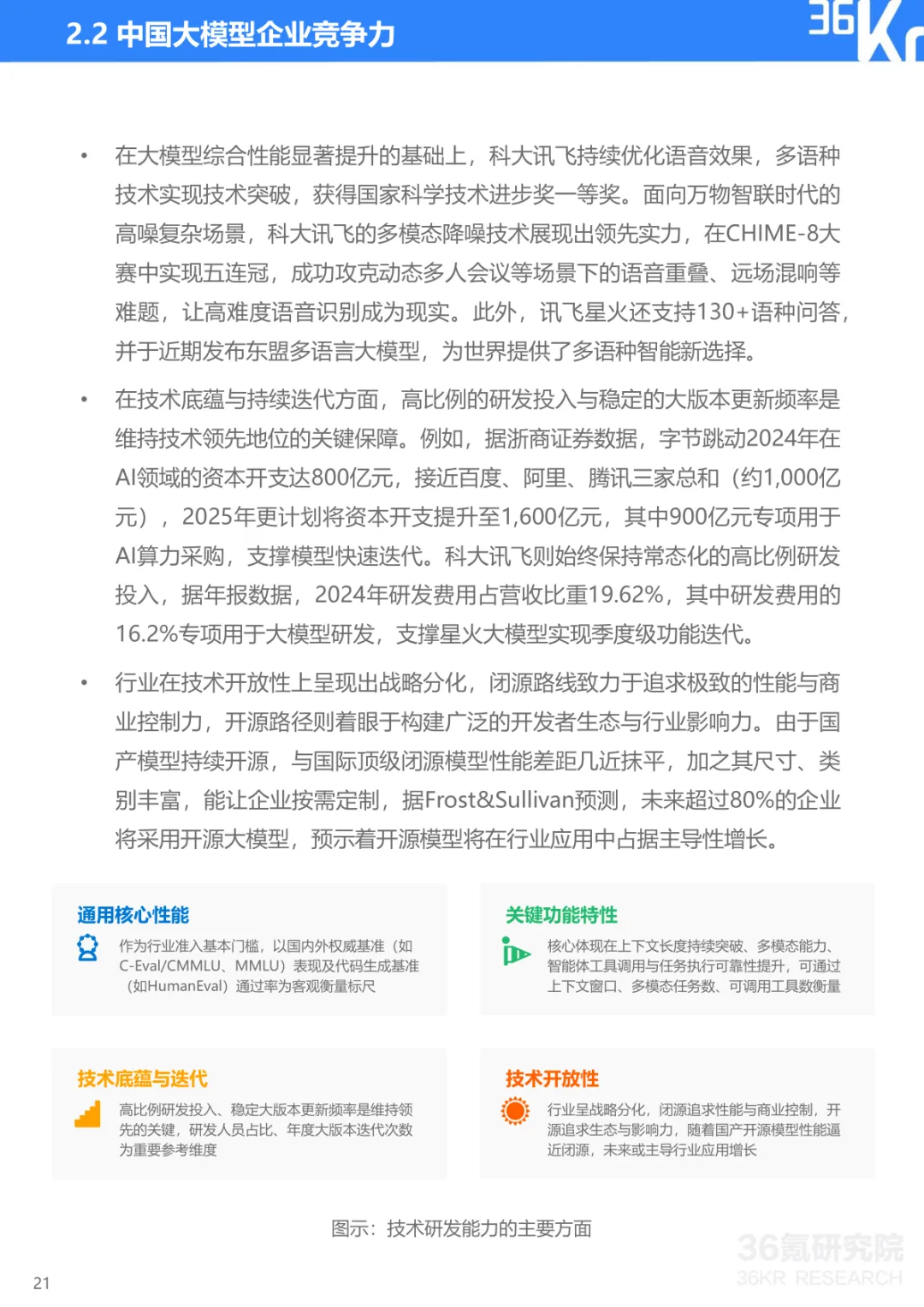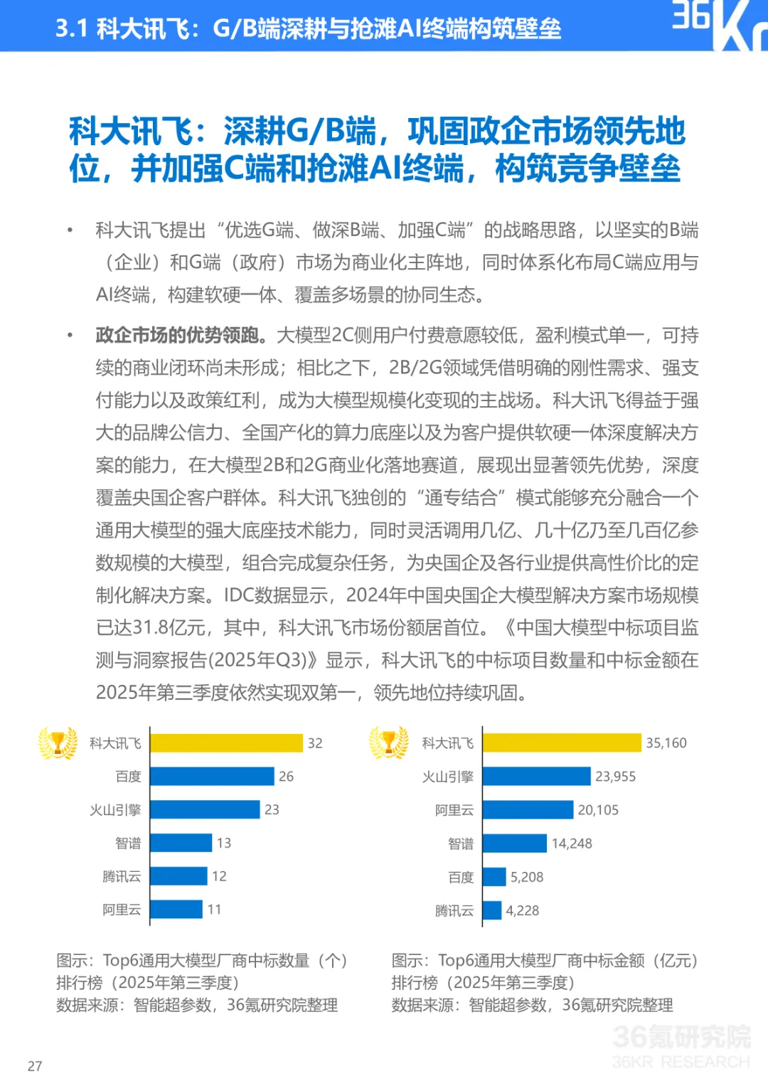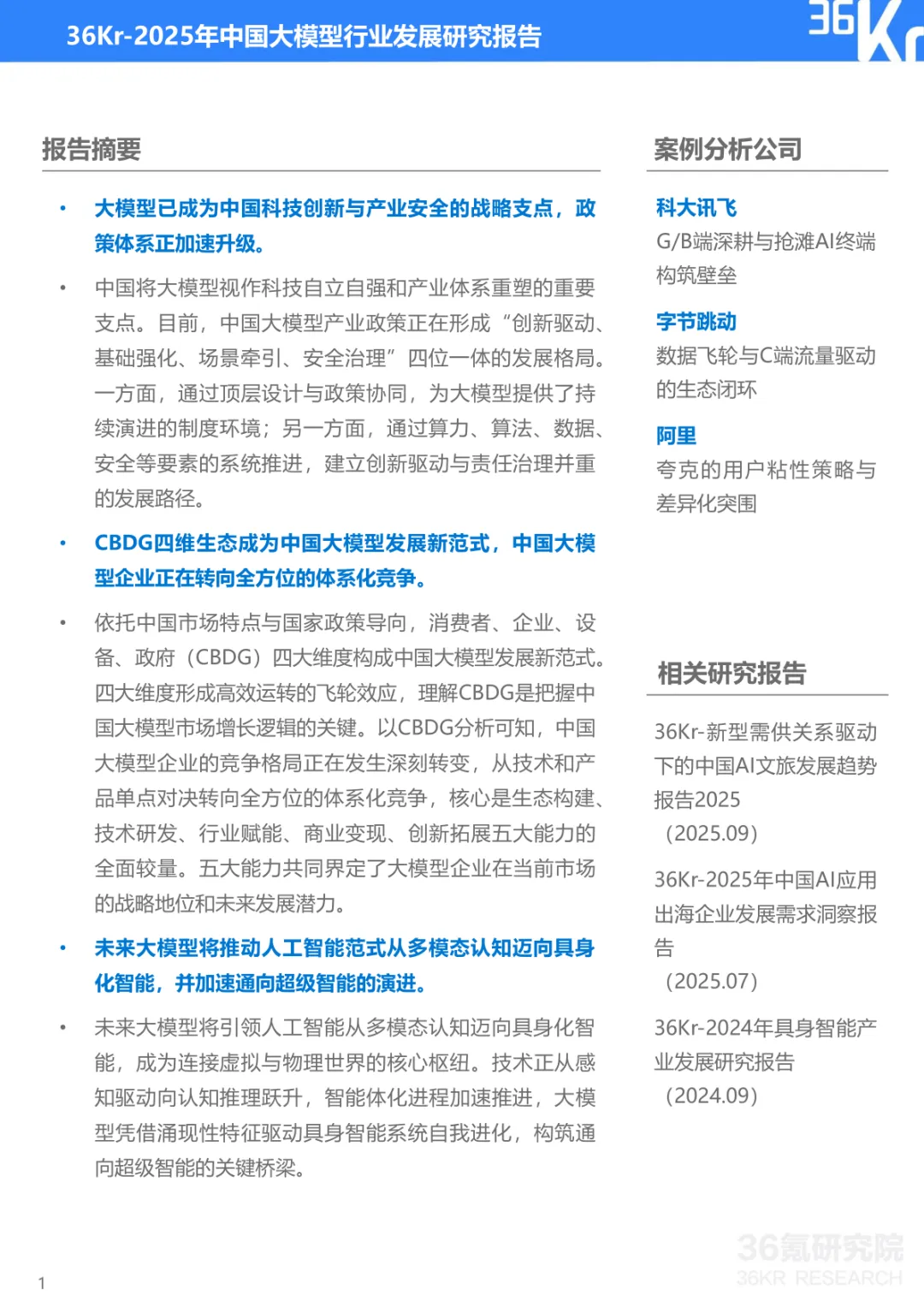 导读:报告聚焦中国大模型行业发展现状与趋势,提出 CBDG 四维生态新范式,揭示行业从技术单点竞争转向体系化较量的核心逻辑。大模型已成为国家科技创新与产业安全的战略支点,政策体系形成 “创新驱动、基础强化、场景牵引、安全治理” 四位一体格局。CBDG 四维生态(消费者、企业、设备、政府)构成行业发展核心框架,四大维度深度耦合形成飞轮效应,主导行业增长逻辑。市场竞争聚焦生态构建、技术研发、行业赋能、商业变现与创新拓展五大能力,政企市场成为商业化主阵地,具身智能与多模态融合成为技术突破方向。头部企业呈现差异化路径,科大讯飞深耕 G/B 端并布局 AI 终端,字节跳动依托 C 端流量与数据飞轮构建生态闭环,阿里通过夸克工具集实现差异化突围。未来技术将向多模态融合、智能体化、具身智能演进,产业价值链向应用与服务层聚集,治理体系聚焦安全可信与国际竞合,推动行业高质量发展。