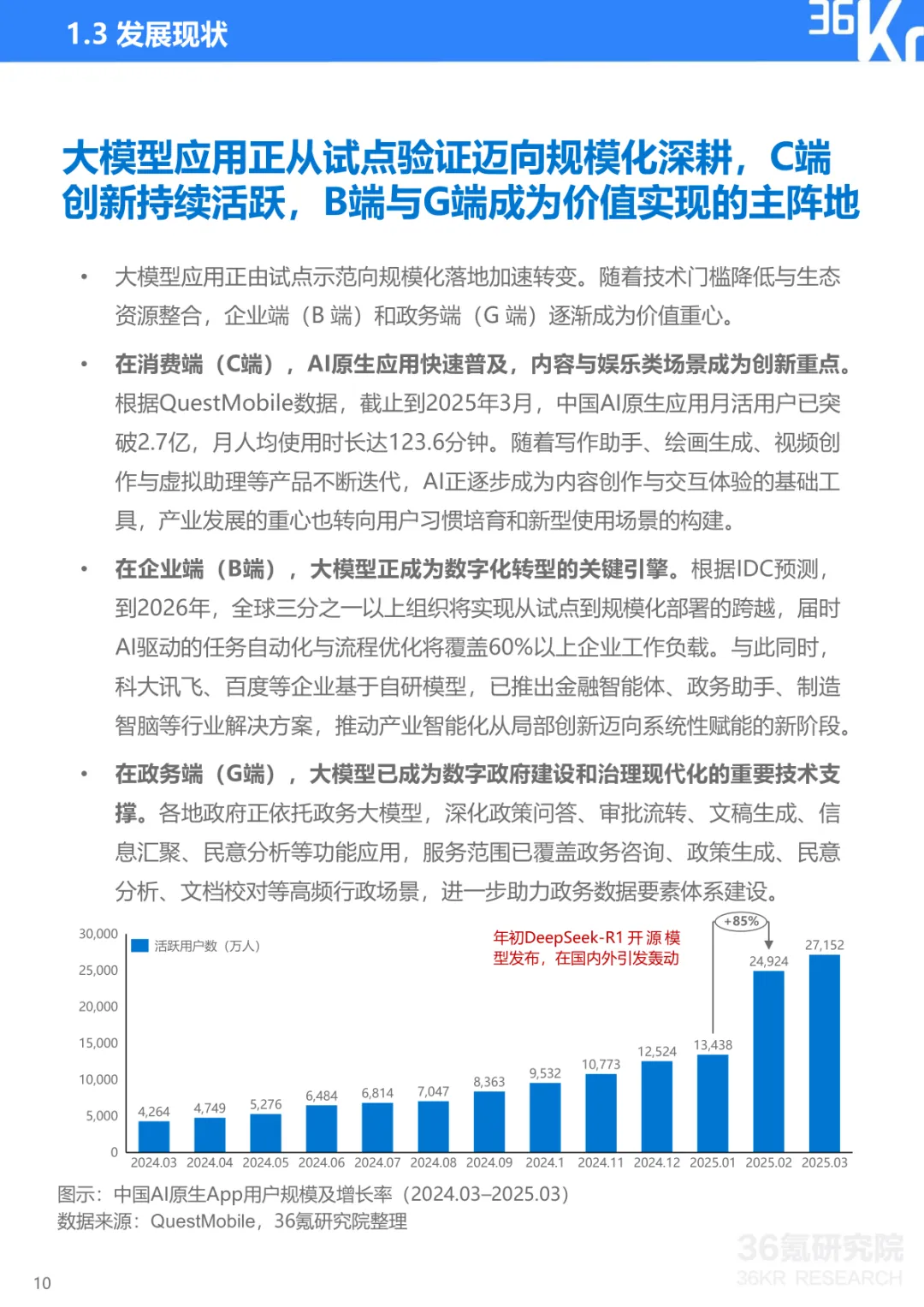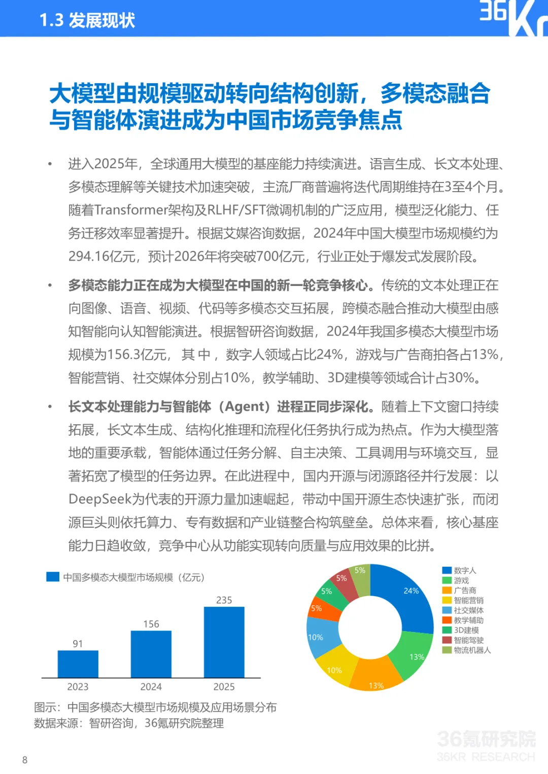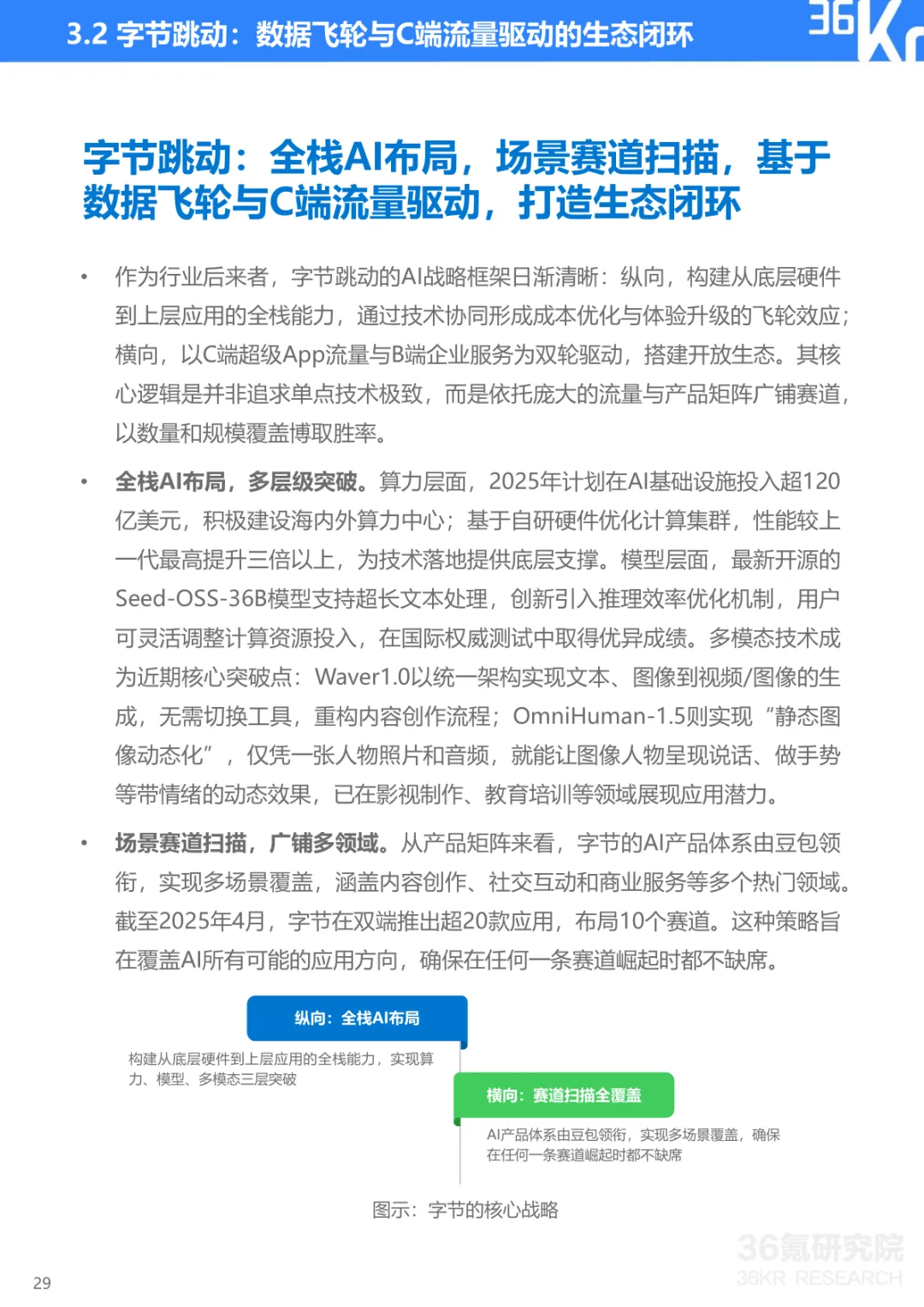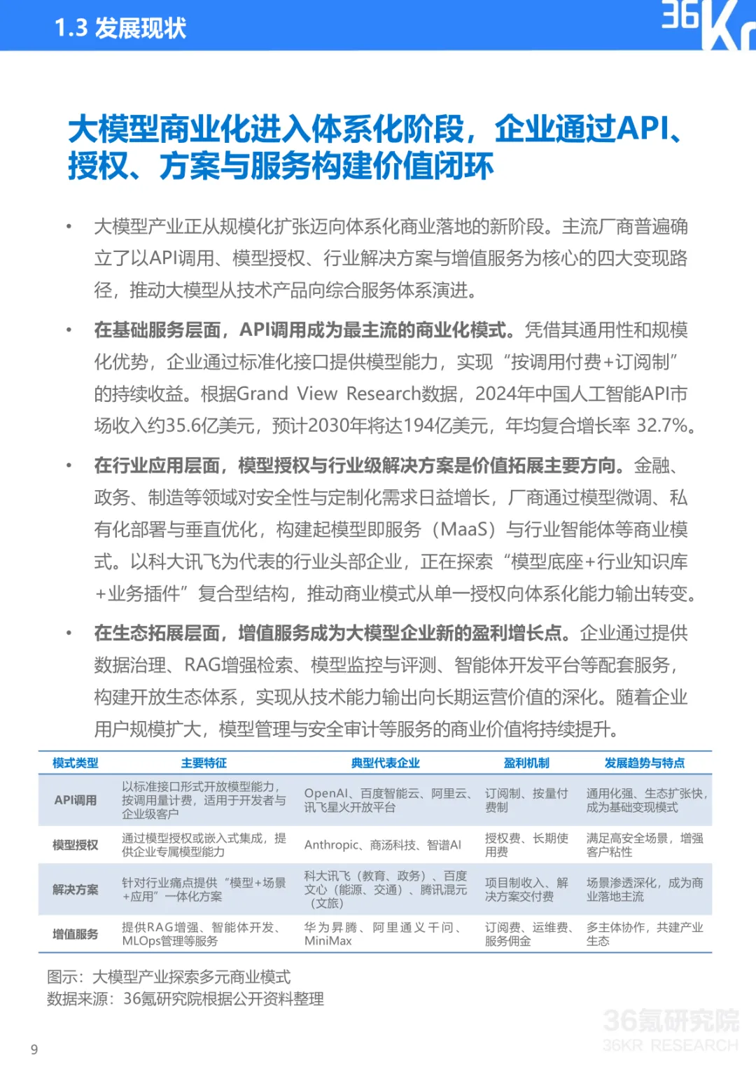导读:报告聚焦中国大模型行业发展现状与趋势,提出 CBDG 四维生态新范式,揭示行业从技术单点竞争转向体系化较量的核心逻辑。大模型已成为国家科技创新与产业安全的战略支点,政策体系形成 “创新驱动、基础强化、场景牵引、安全治理” 四位一体格局。CBDG 四维生态(消费者、企业、设备、政府)构成行业发展核心框架,四大维度深度耦合形成飞轮效应,主导行业增长逻辑。市场竞争聚焦生态构建、技术研发、行业赋能、商业变现与创新拓展五大能力,政企市场成为商业化主阵地,具身智能与多模态融合成为技术突破方向。头部企业呈现差异化路径,科大讯飞深耕 G/B 端并布局 AI 终端,字节跳动依托 C 端流量与数据飞轮构建生态闭环,阿里通过夸克工具集实现差异化突围。未来技术将向多模态融合、智能体化、具身智能演进,产业价值链向应用与服务层聚集,治理体系聚焦安全可信与国际竞合,推动行业高质量发展。