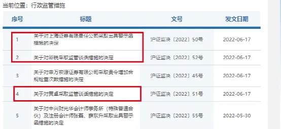 此外,对于上海证券研究所主持工作的副所长邵某,上海证监局认为其对公司研究报告发布前的质量控制存在不足负有责任;对分析师黄某,对研究报告分析结论的合理依据不够充分负有责任。上海证监局决定对二人均采取监管谈话措施,要求其前往上海证监局接受监管谈话。