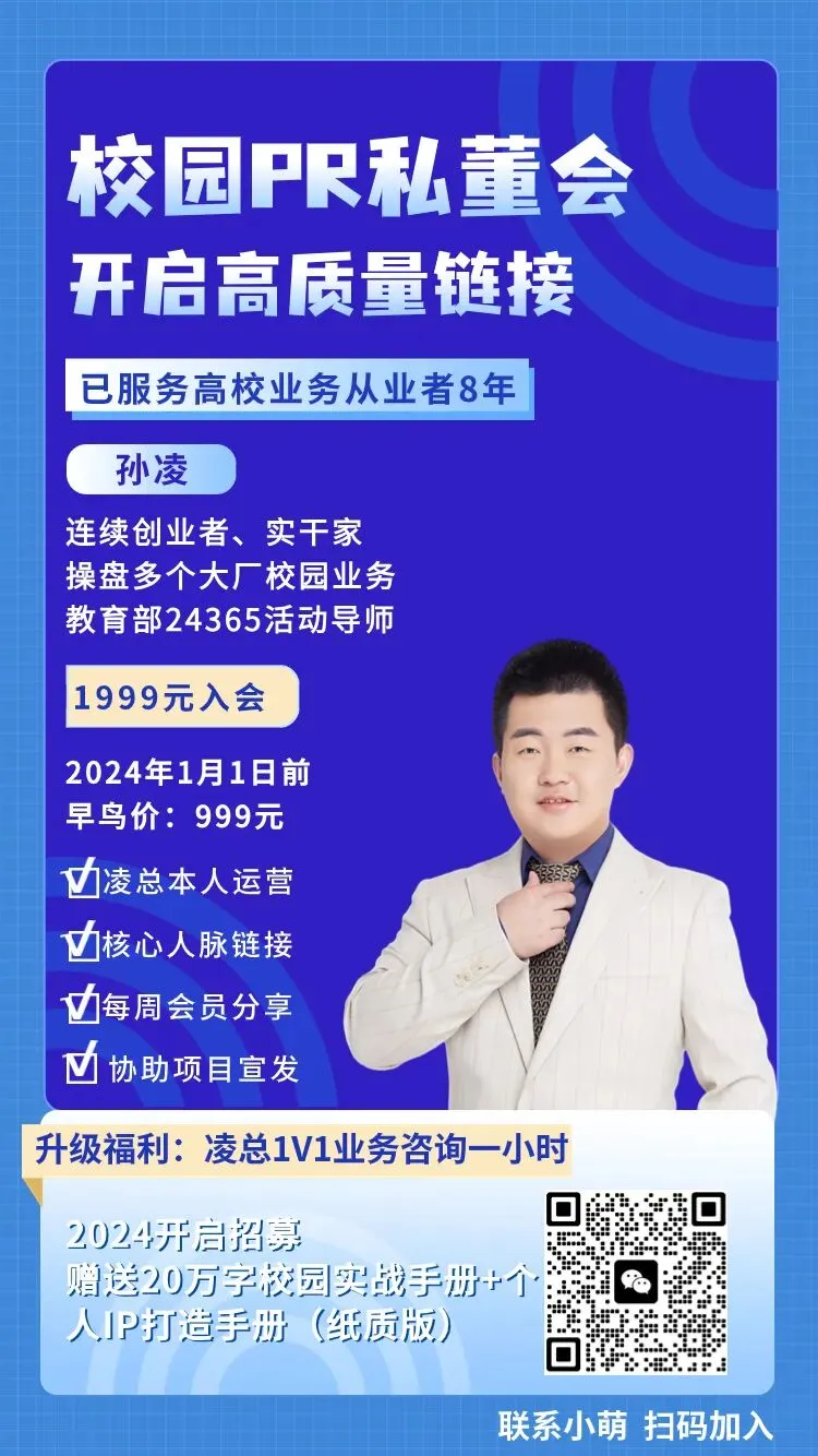 我发起的校园PR私董会,2024年开启招募,继续为从业者们提供服务。