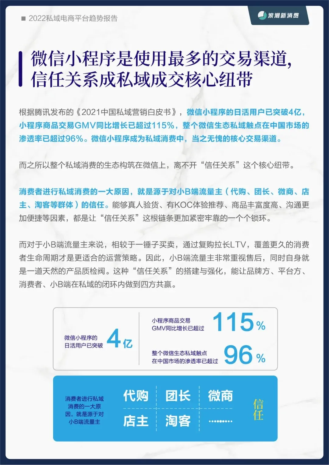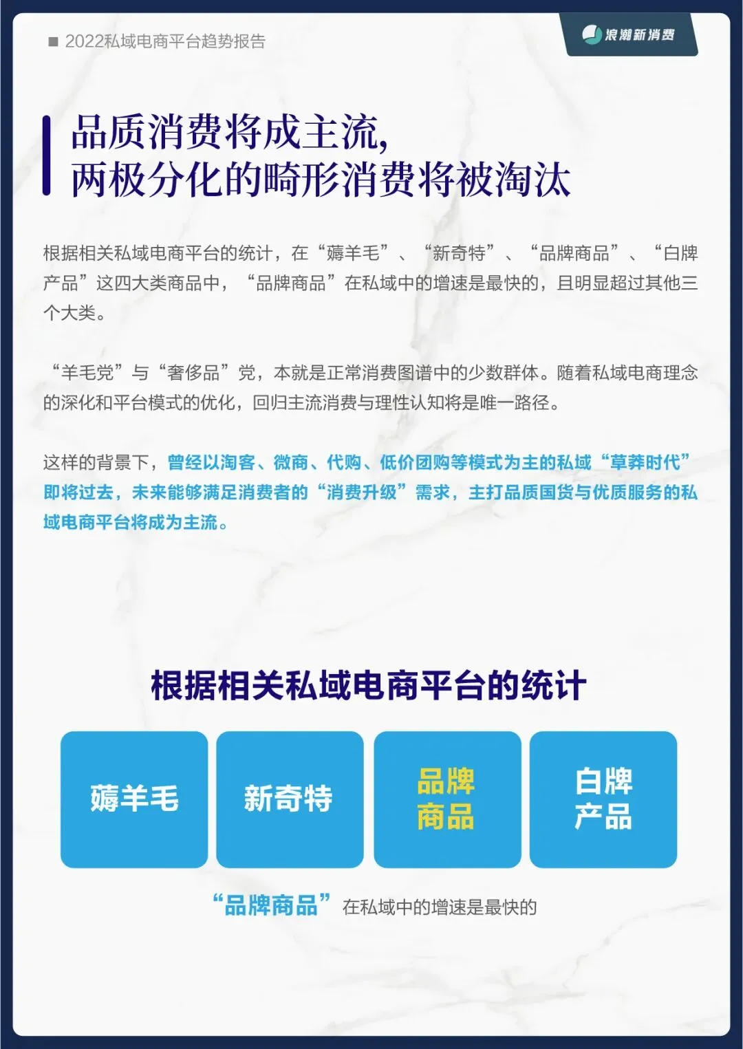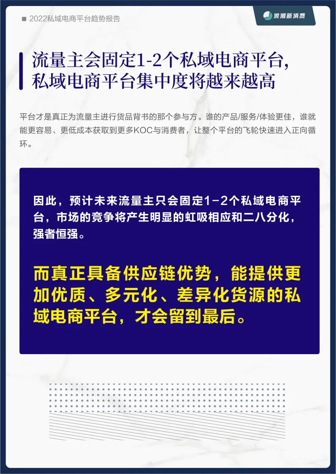 为此,浪潮新消费在之前品牌私域报告的基础上,再次推出《2022私域电商平台趋势报告》,从平台的角度探究未来私域蓝海中的价值锚点。