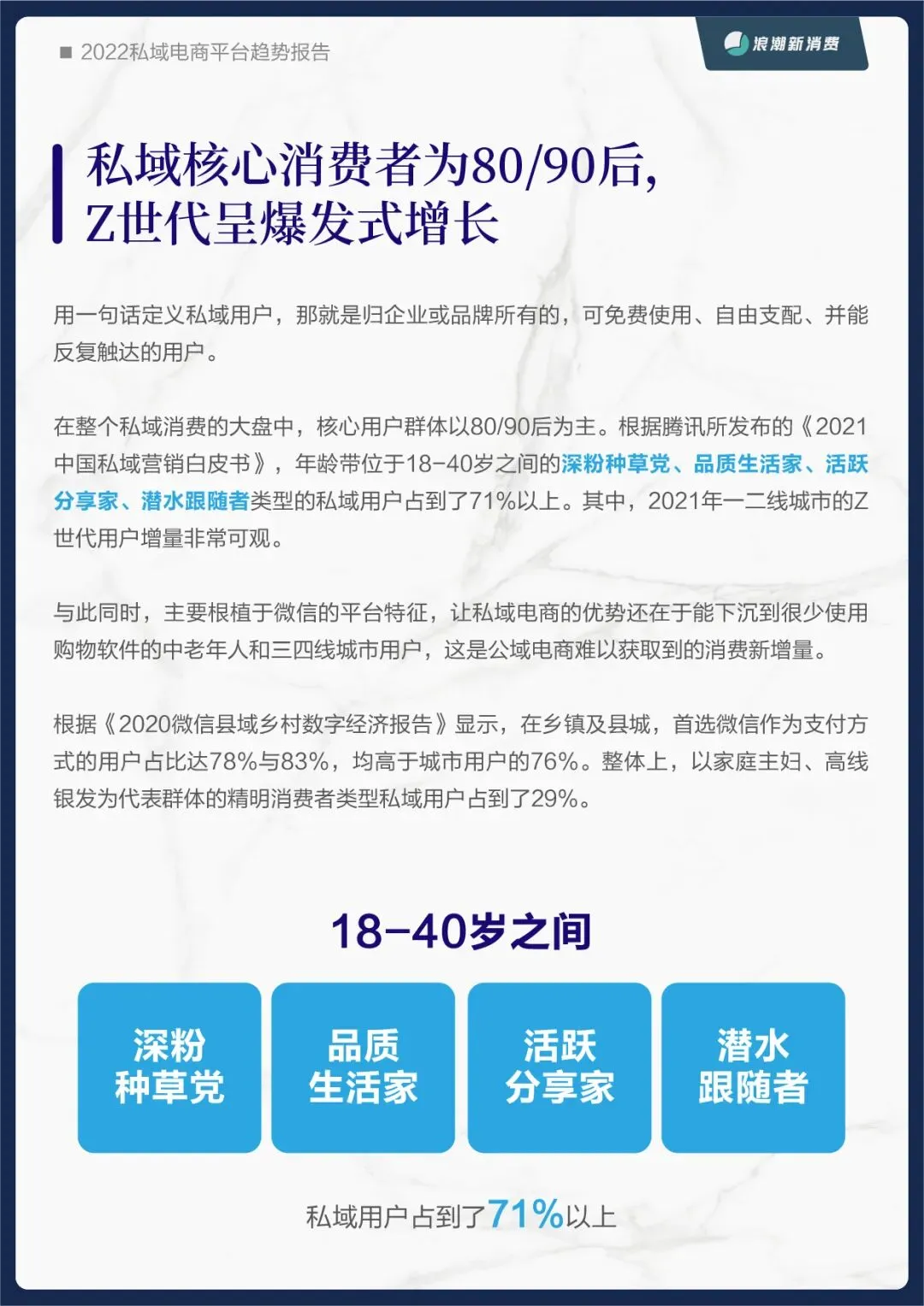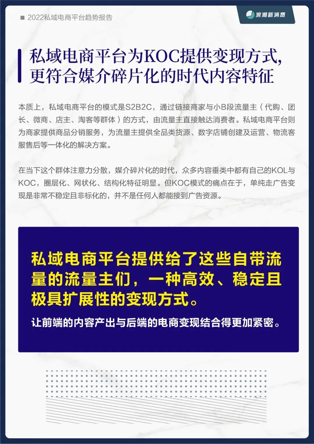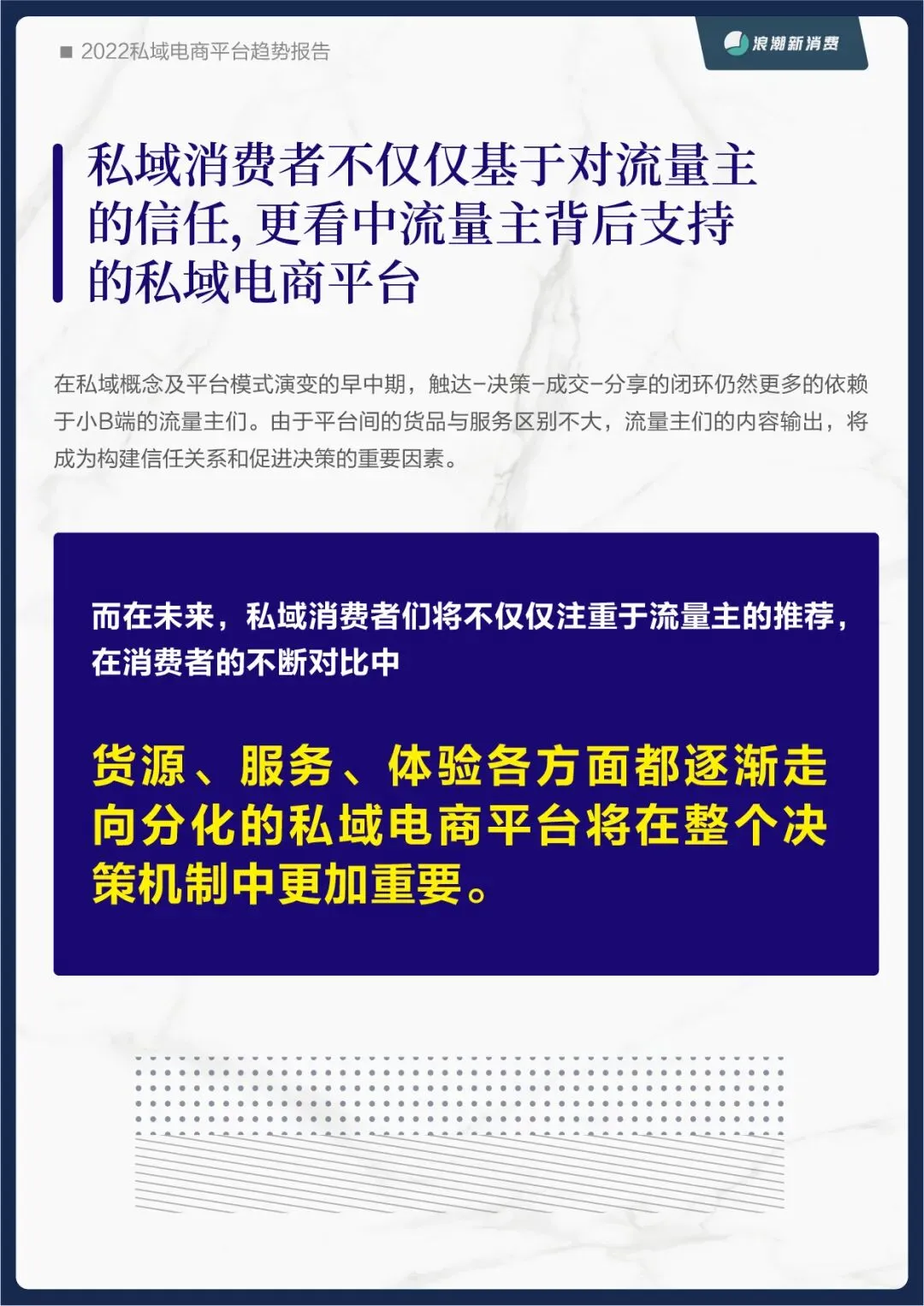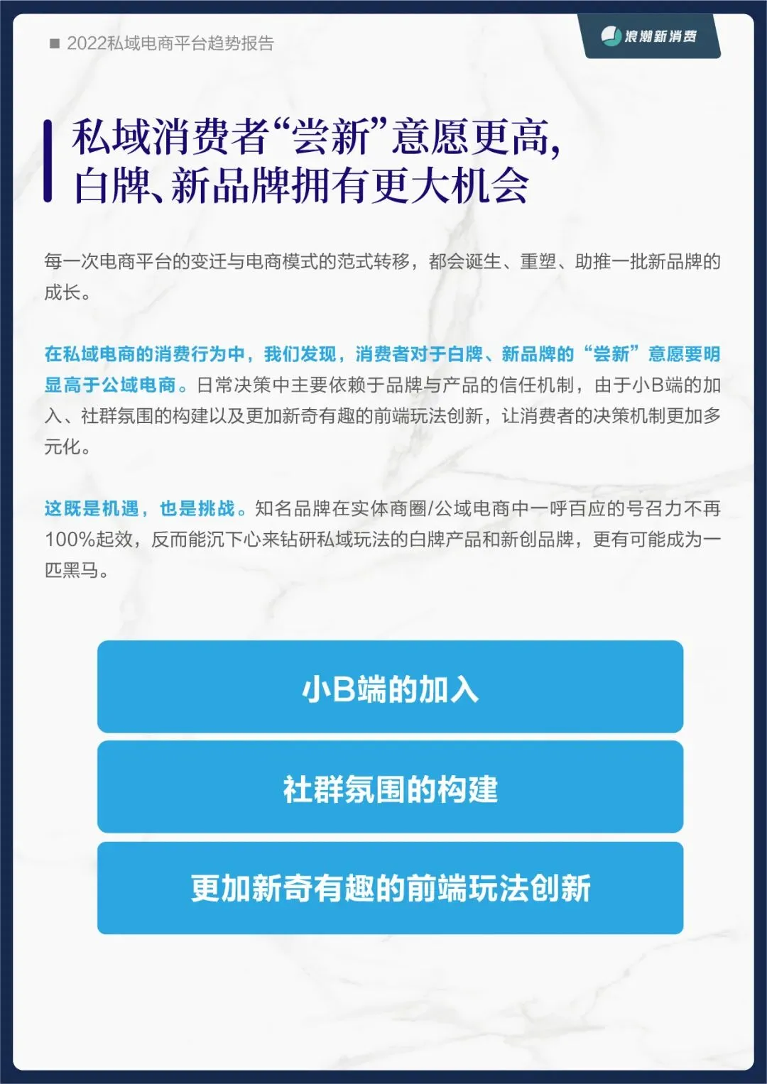 为此,浪潮新消费在之前品牌私域报告的基础上,再次推出《2022私域电商平台趋势报告》,从平台的角度探究未来私域蓝海中的价值锚点。