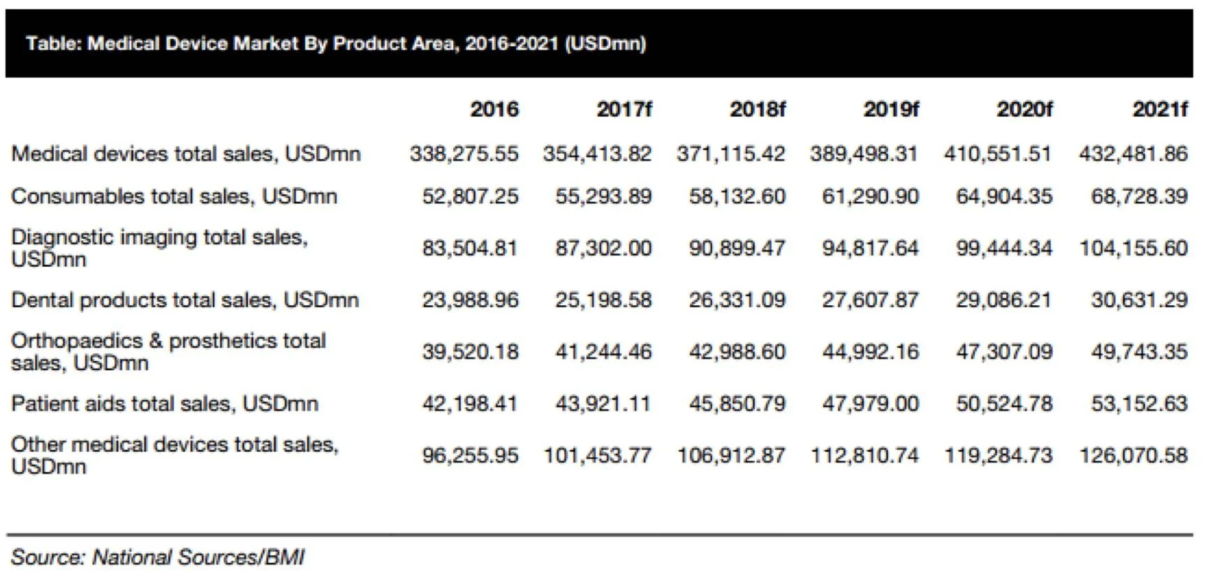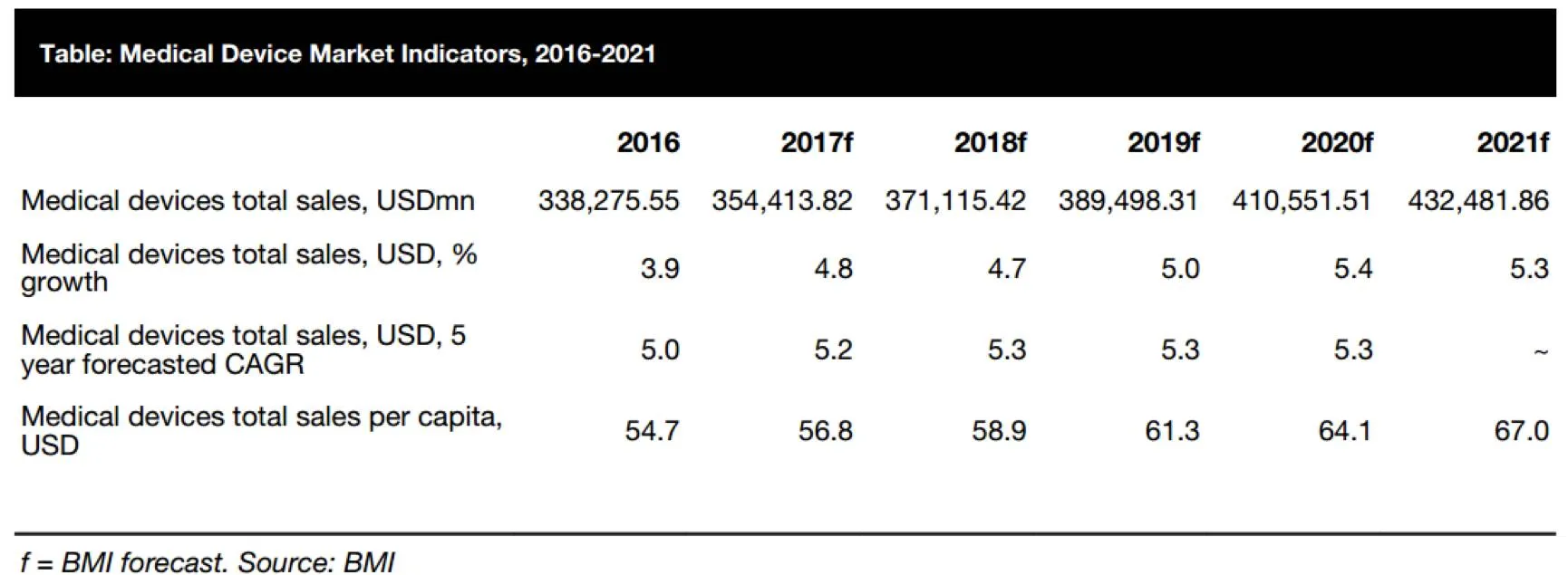 资料来源:BMI Research:Global Medical Devices Report Q2 2017
