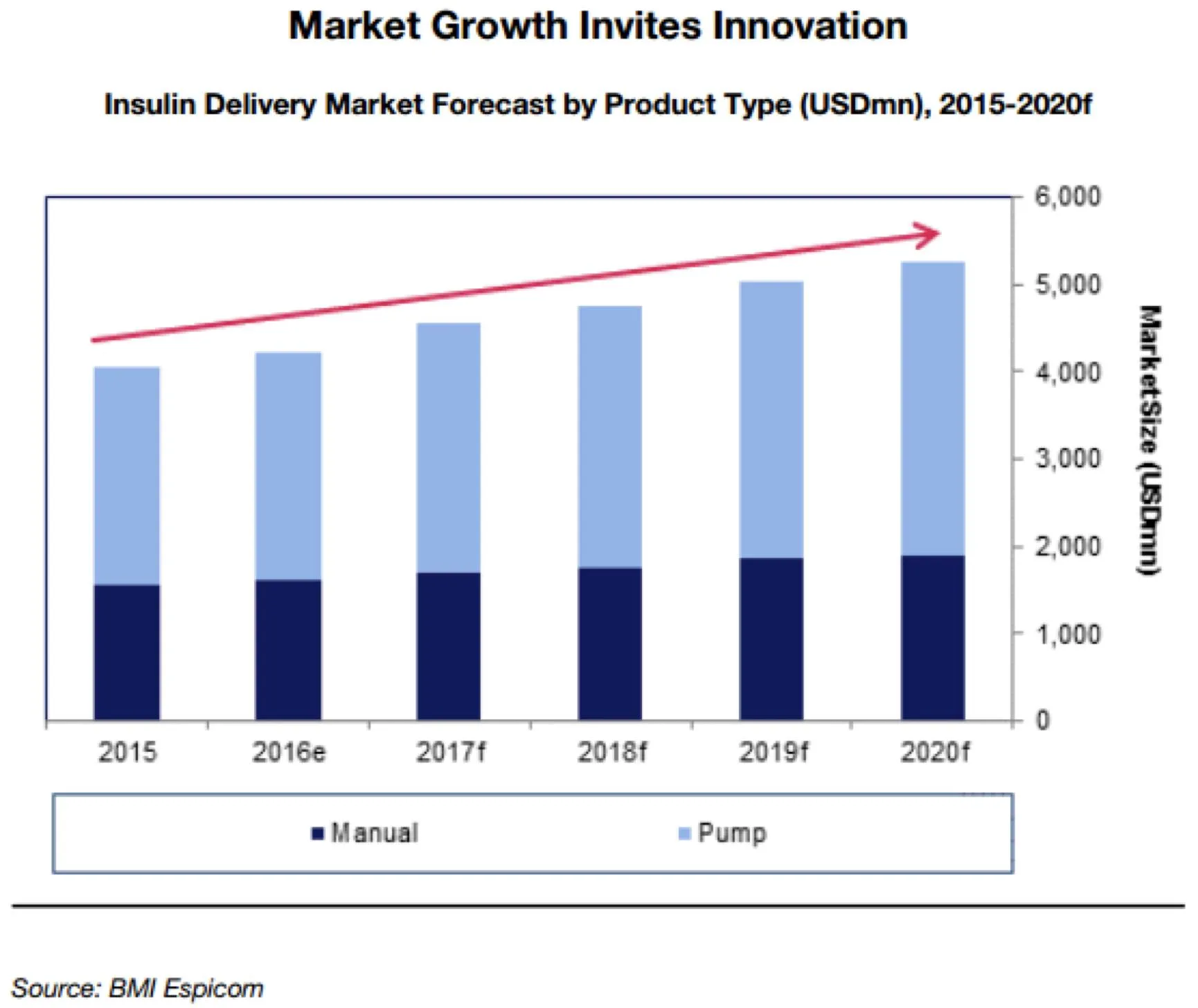 在短中期内,胰岛素递送产品将表现出稳定的增长趋势,BMI预测全球胰岛素递送器械的市场规模将达到40亿美元,2015年其增长率为5%。