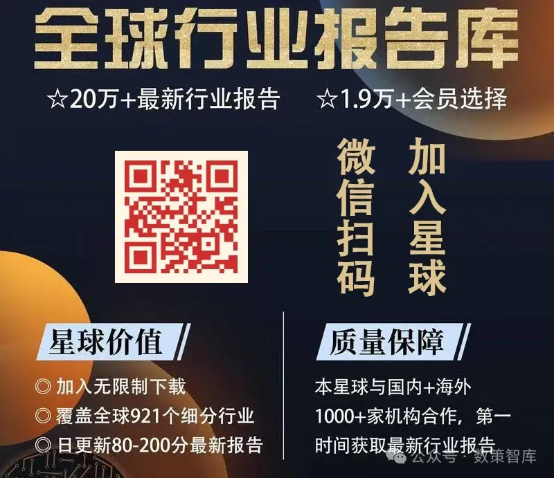 需要下载报告的朋友,可以扫下方二维码付费成为会员,20万+份完整版报告,随意下载,不受限制,报告涵盖全行业。星球针对各行业做了合集系列,合集系列保持更新。客服微信:xat0888