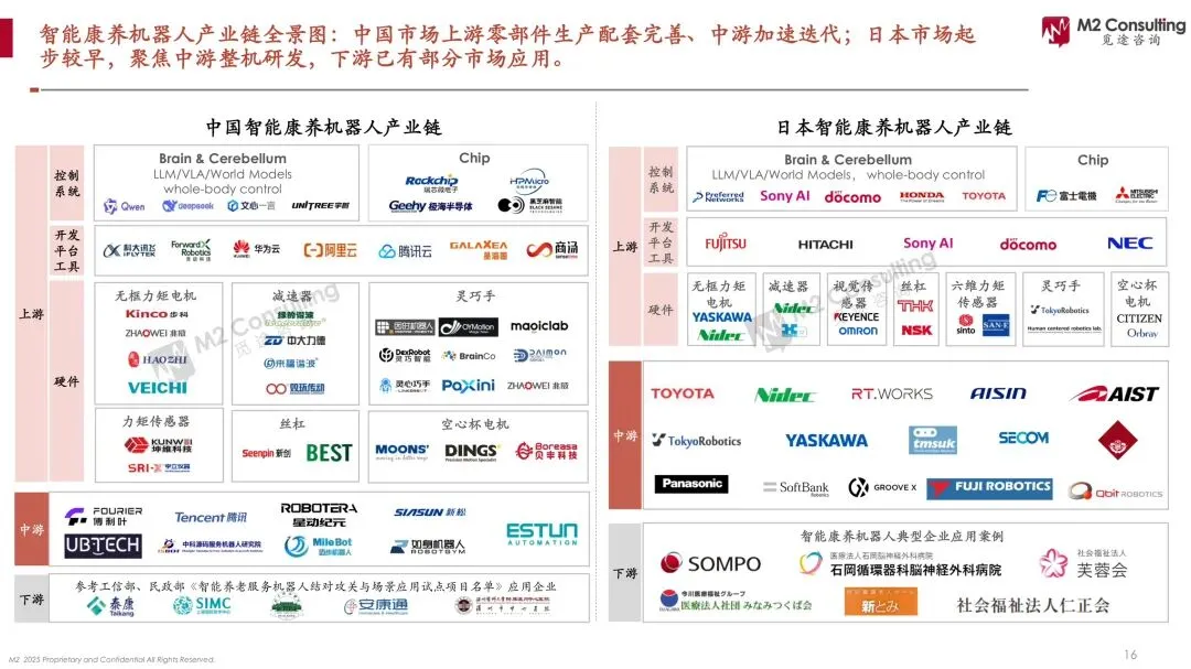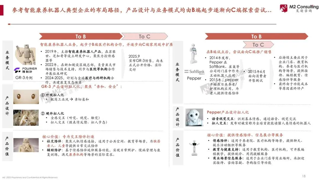 亚洲国家用18~24年跑完欧美40年的老龄化进程,劳动力“坍塌”速度远快于人力补充;日本介护保险把机器人采购价压到2万美元/台,机构回本周期<18个月,形成“政府买单—厂商降价—数据迭代”飞轮。中国缺普惠险,家庭价格敏感阈值1万美元,导致B端重复采购、C端观望,市场呈“哑铃”断裂。
