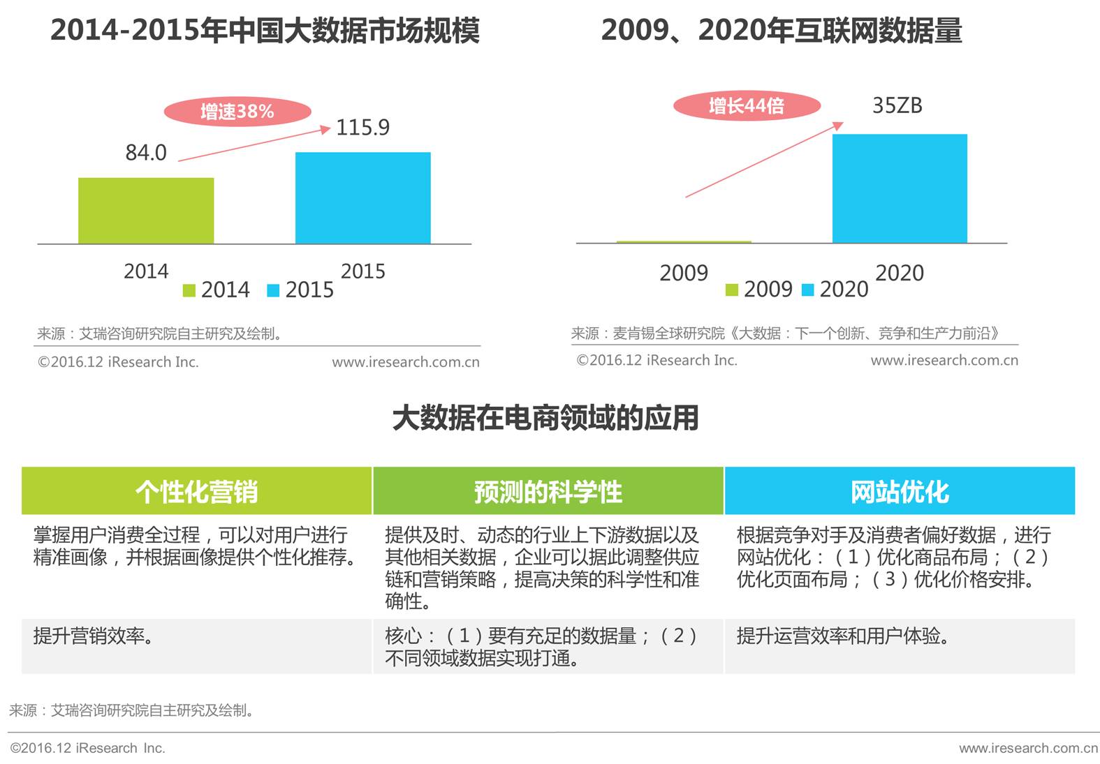 美国互联网数据中心指出,互联网上的数据每年增长50%,且增速仍处于逐渐升高状态。随着互联网计算处理技术的逐渐成熟,大数据开始应用到各行各业。移动电商流量红利渐失,大数据将成为新的利益推动点,精准匹配供求信息、个性化推荐、用户偏好预测、优化页面,提升运营效率。