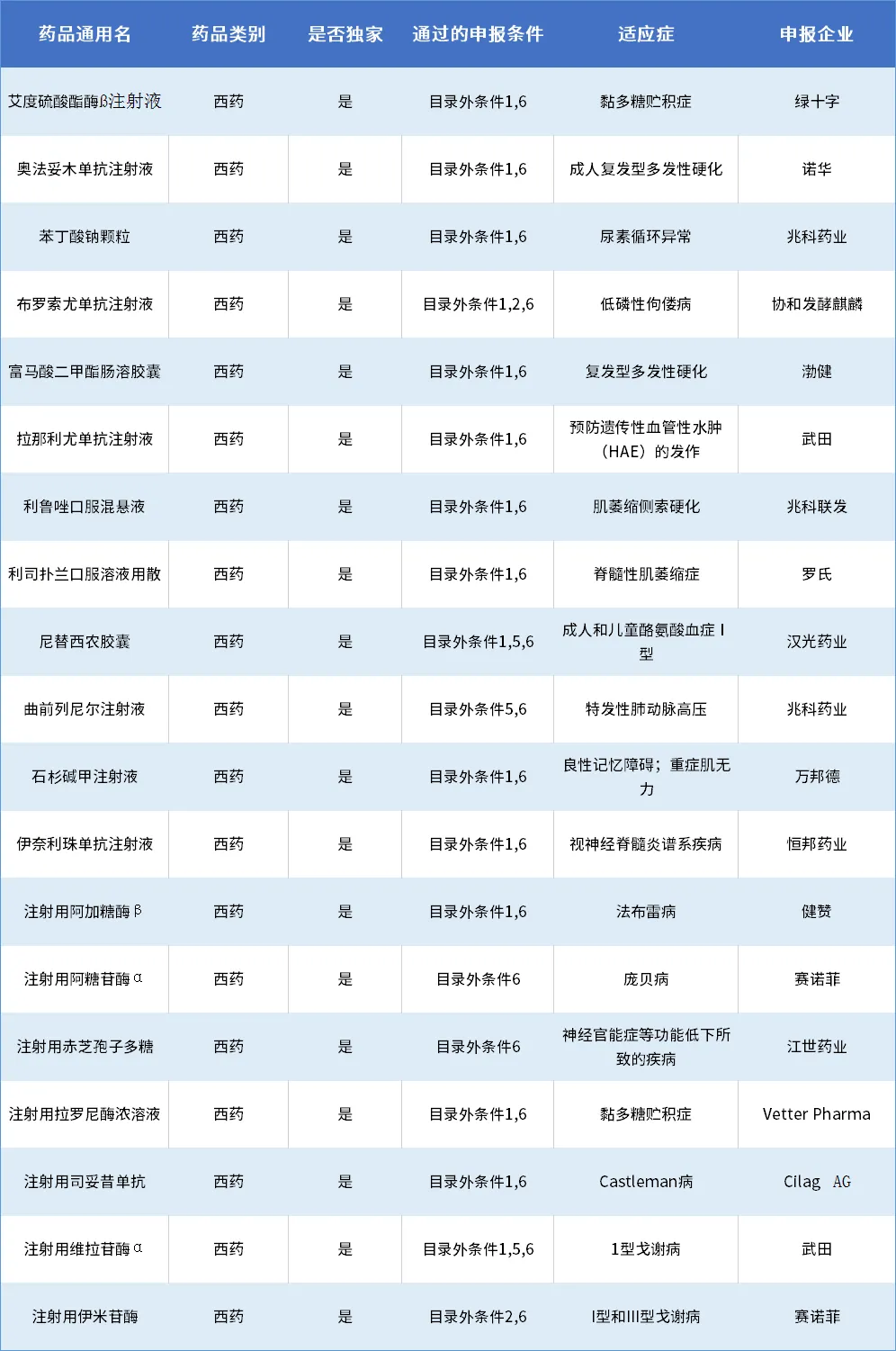 表3 2022年通过初步形式审查的罕见病用药