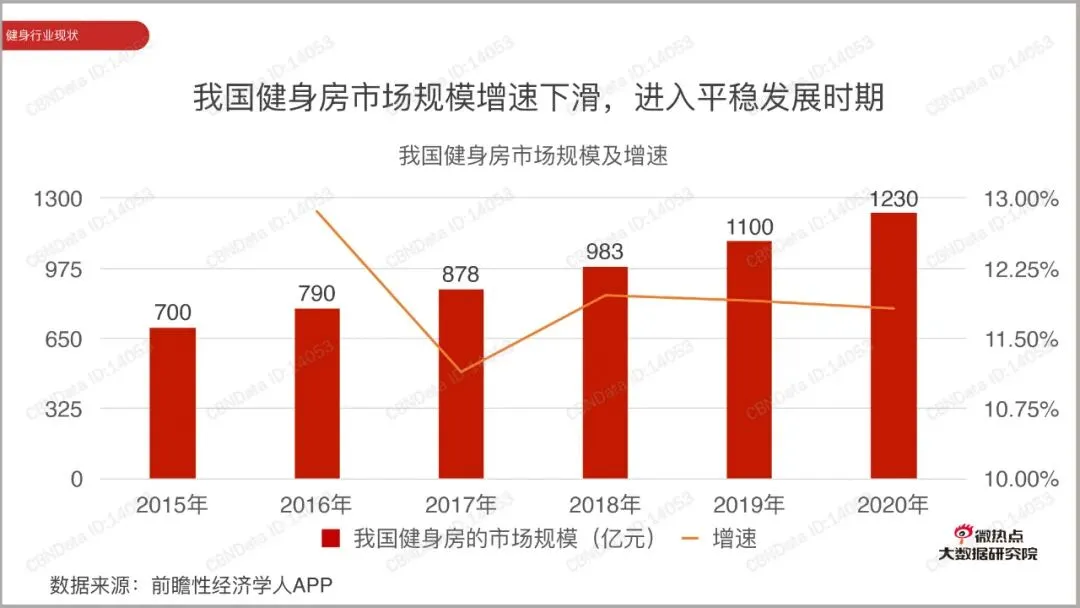 1. 我国健身房市场规模增速下降,进入平稳发展时期;