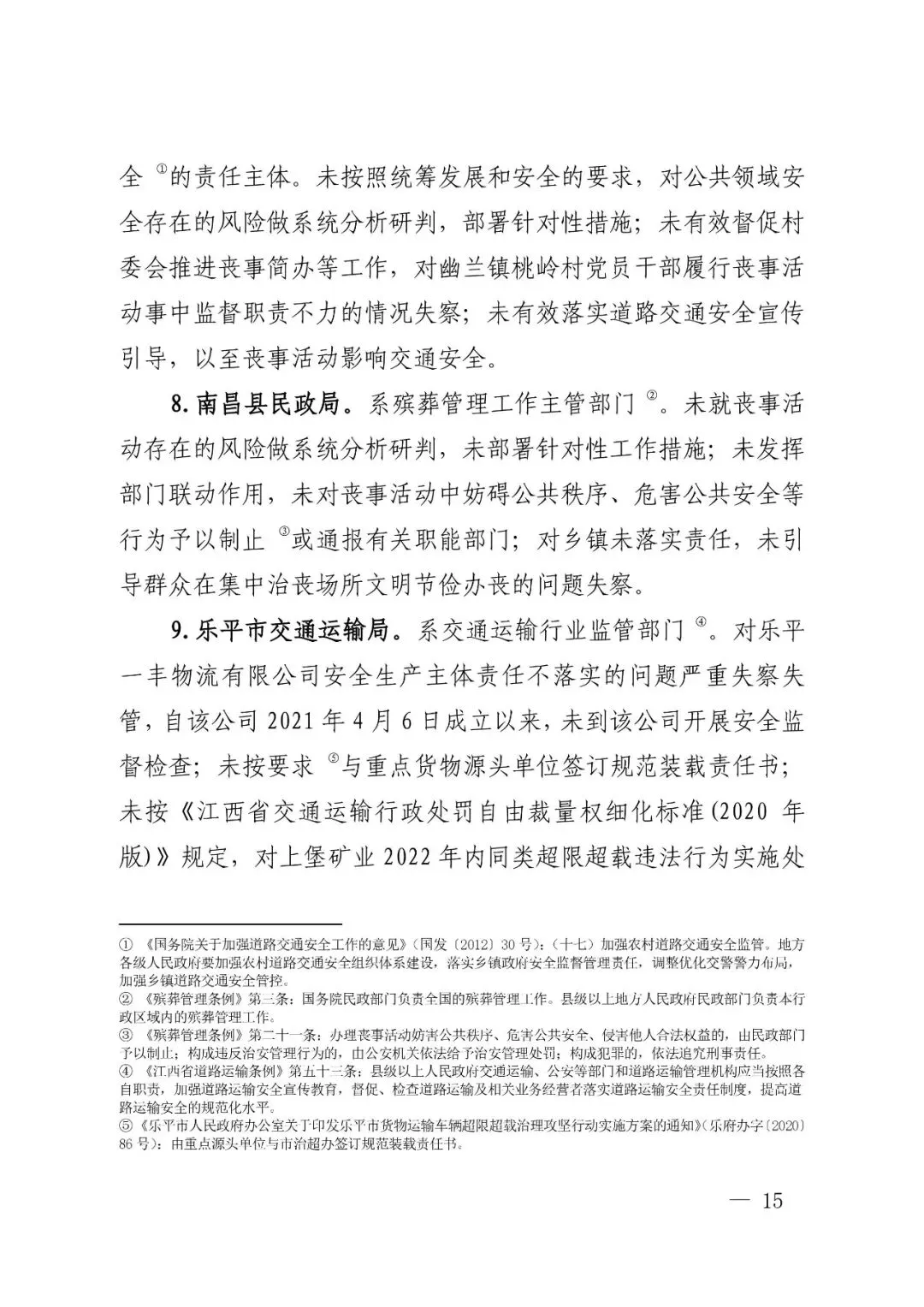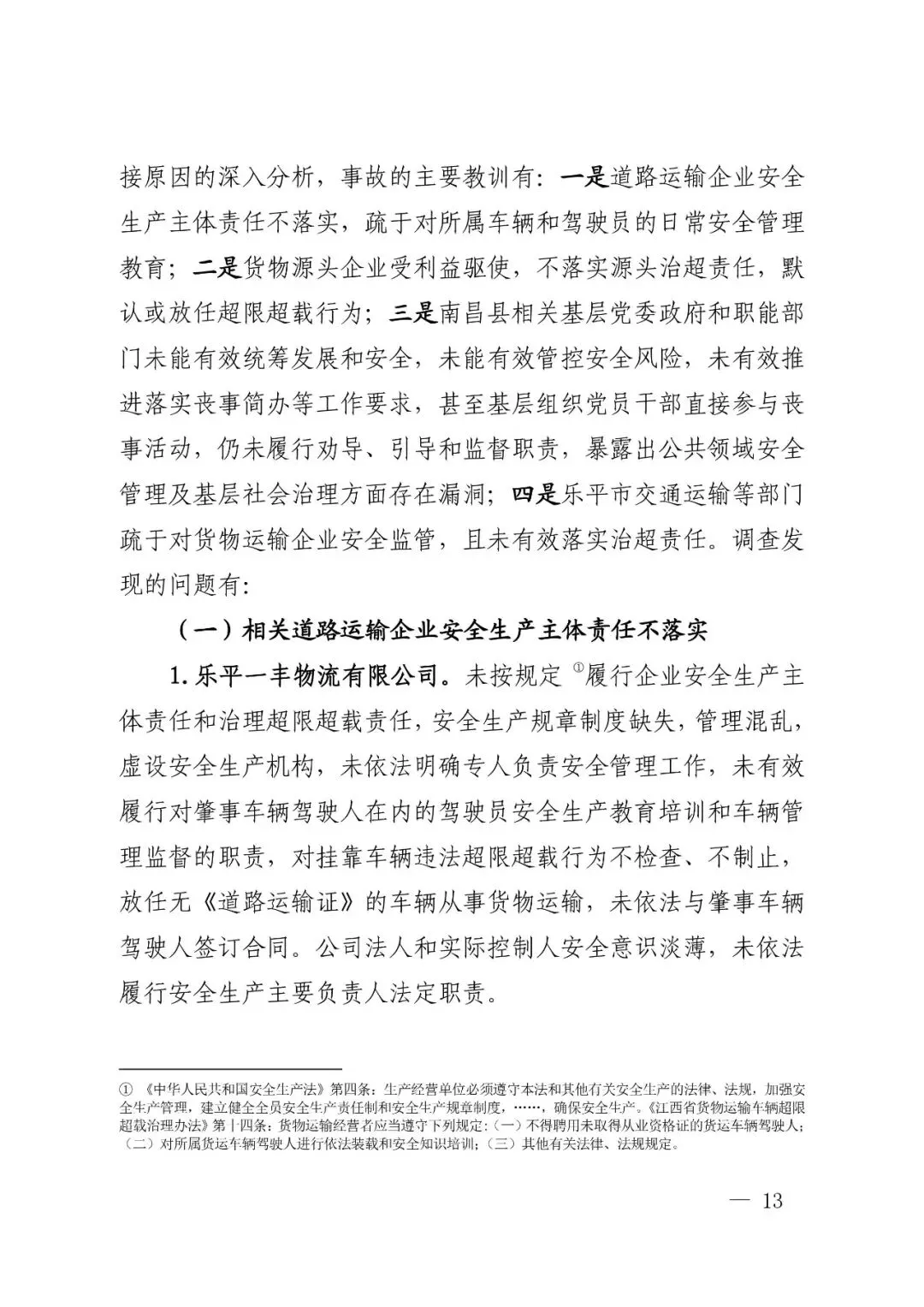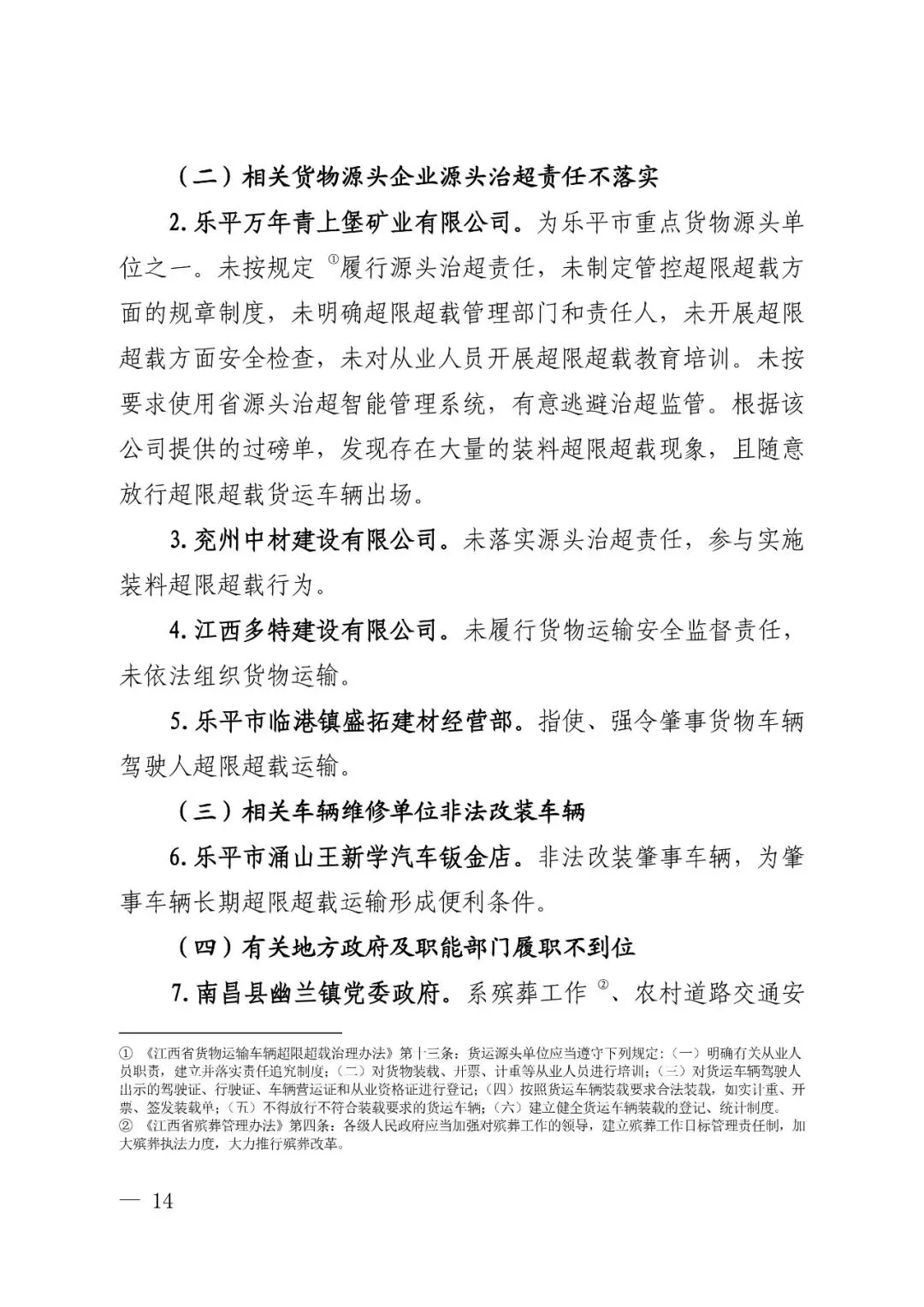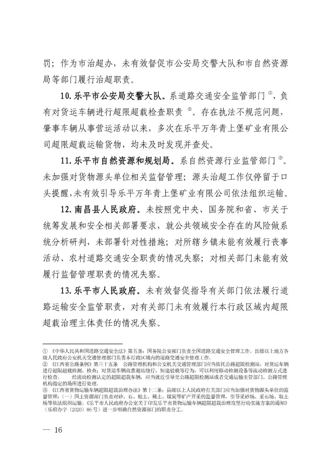 四是乐平市交通运输等部门疏于对货物运输企业安全监管,且未有效落实治超责任。