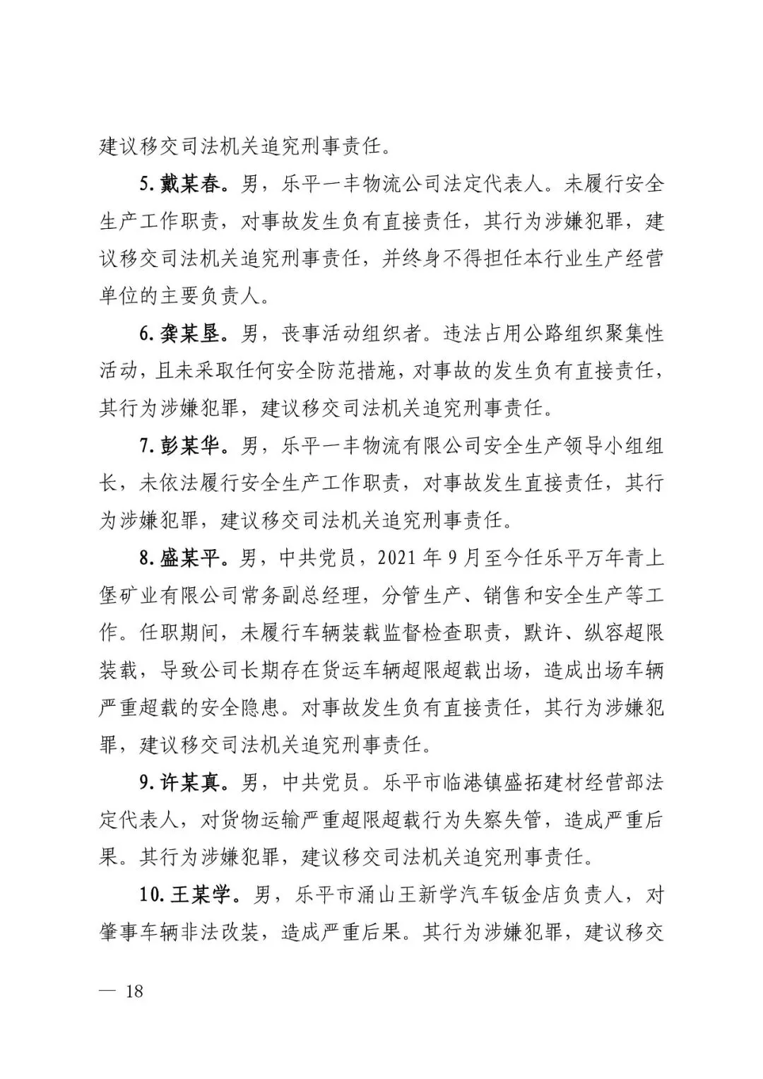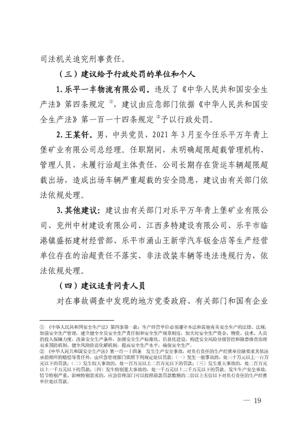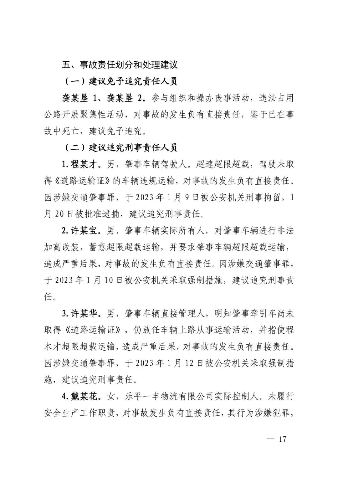 调查报告建议,追究肇事车辆驾驶人程某才、肇事车辆实际所有人许某宝、肇事车辆直接管理人许某华等人员刑事责任。
