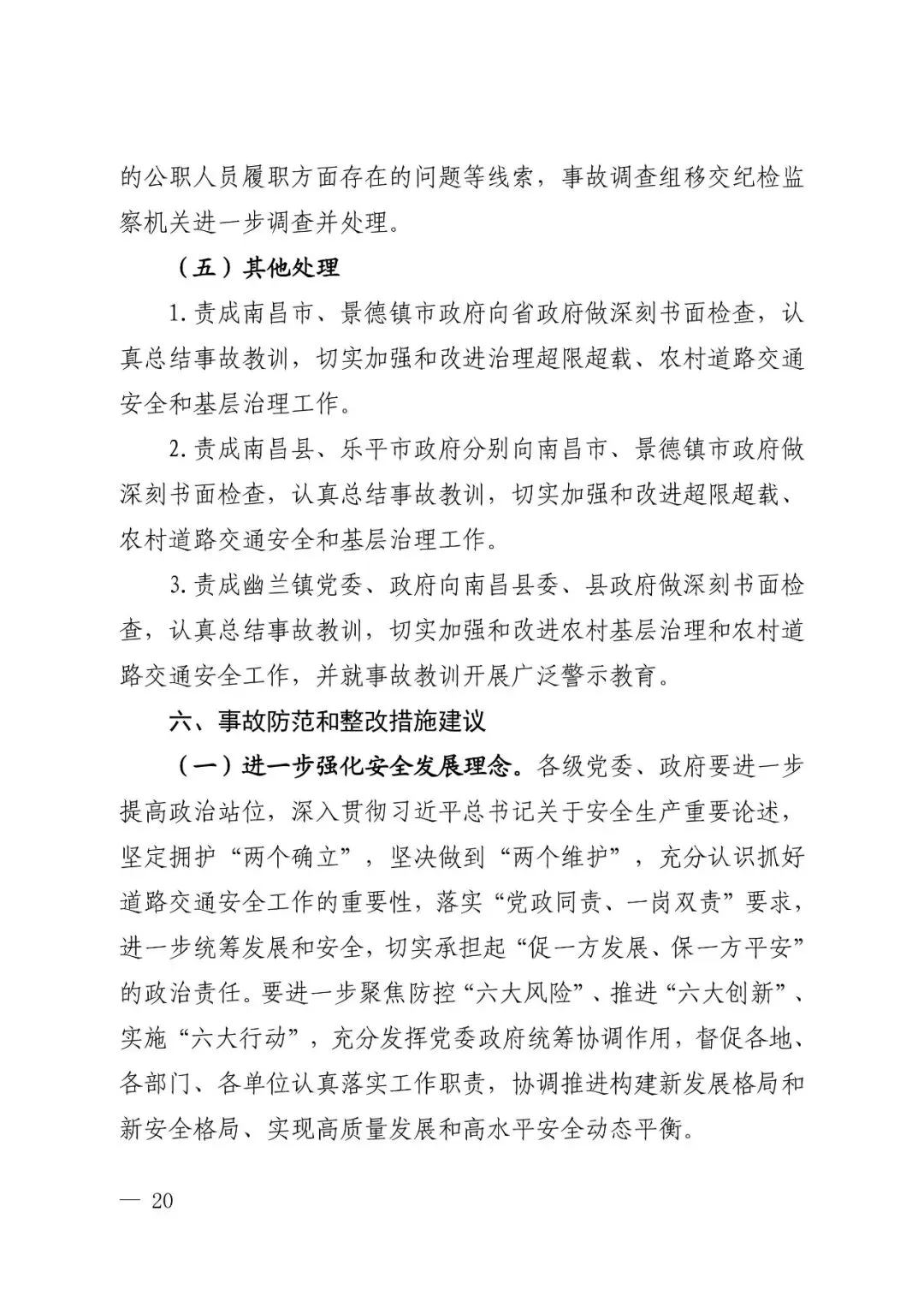 调查报告表示,对在事故调查中发现的地方党委政府、有关部门和国有企业的公职人员履职方面存在的问题等线索,事故调查组将移交纪检监察机关进一步调查并处理。