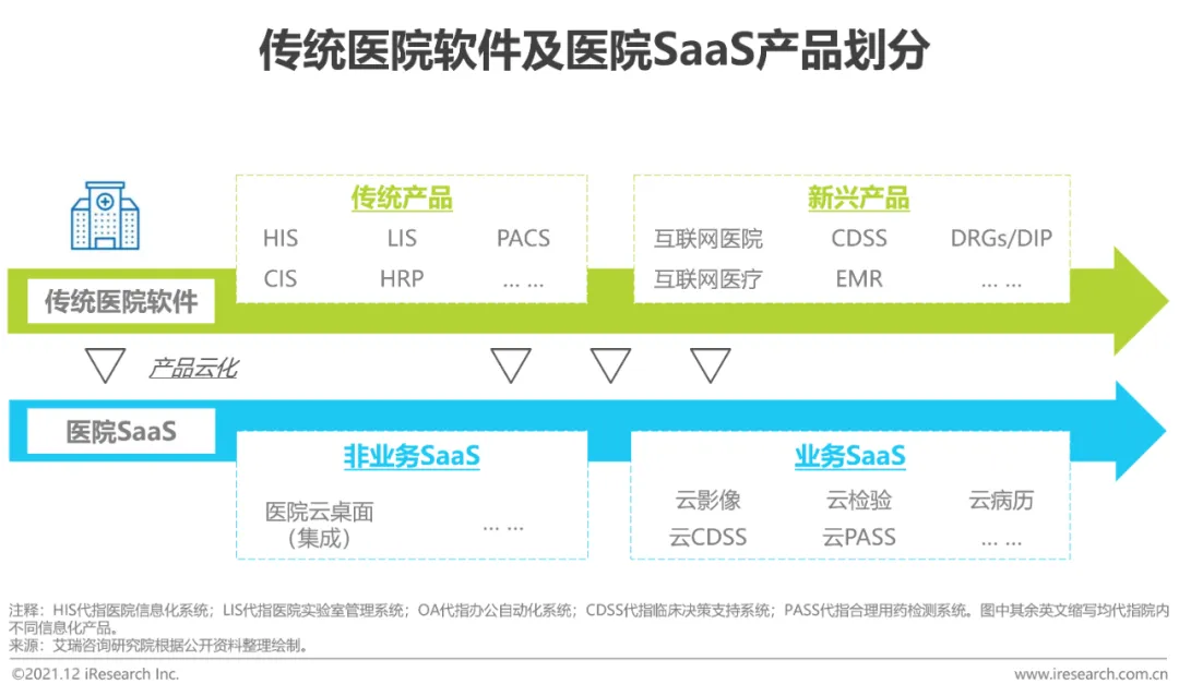 医院端SaaS产品是传统医院软件产品的云化延伸,医院端SaaS产品线不断扩张