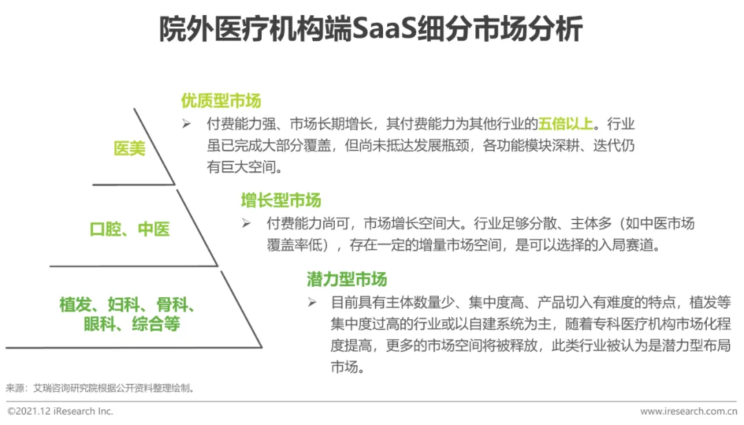 院外医疗机构端SaaS:市场差异