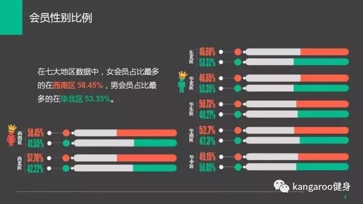 女会员占比最多的在西南区,男会员占比最多的在华北区