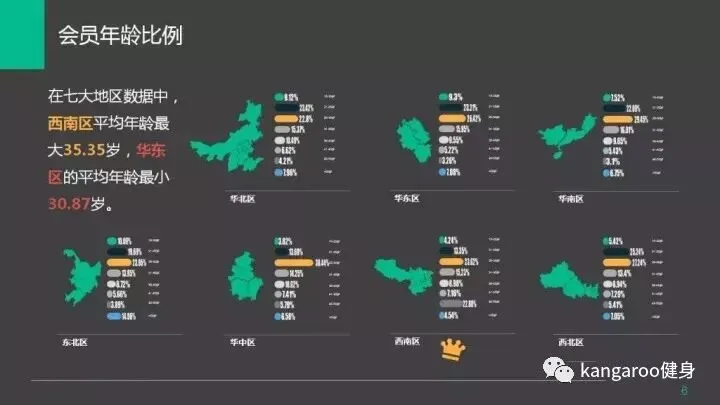 西南区平均年龄最大,华东区域平均年龄最小