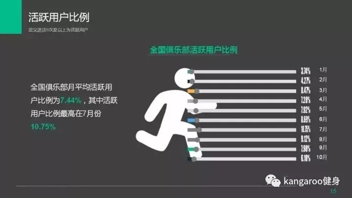 全国健身俱乐部活跃用户比例为7%,7月最高10%