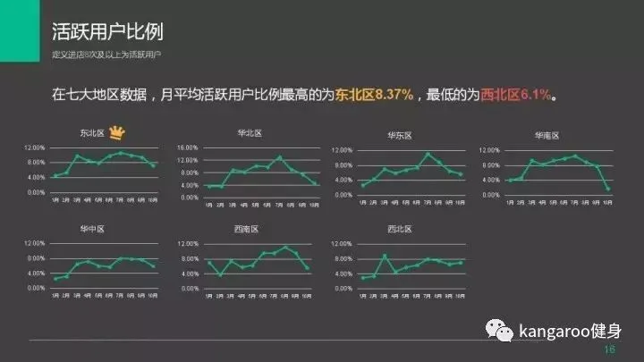 活跃用户比例最高是东北区,最低的是西北区