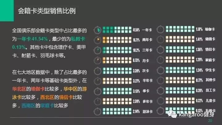健身俱乐部销售的会员卡类型中占比最多的为一年卡