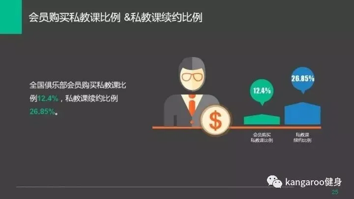 全国健身俱乐部会员购买私教课比例为12%,续课比例为26%