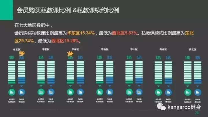 购买私教课比例最高的为华东区