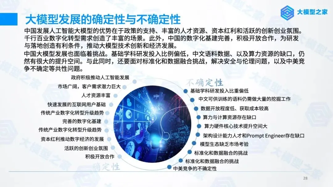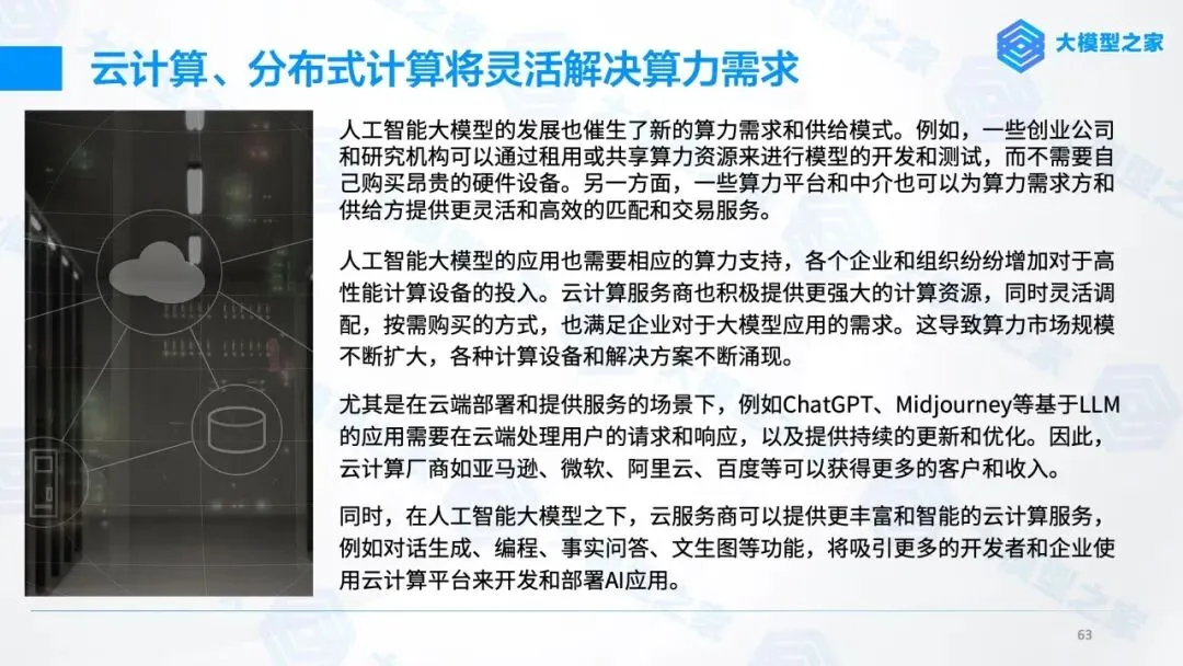 在全球科技瞩目的焦点中,人工智能大模型正在重塑我们的生活、经济以及社会。人工智能大模型是一种利用大量数据和算力来实现复杂任务的技术,它在各个领域都有着广泛的应用和影响。同时,人工智能大模型也可以协助我们分析数据、预测趋势、优化决策、提升效率等方面,从而改变我们的经济结构、商业模式、社会治理等方面。