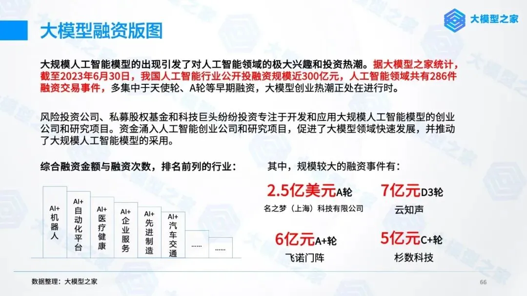 着重预测了未来的发展趋势,给出了大模型产业升级的6大预判。《报告》汇总了今年上半年人工智能大模型领域的融资概况,为企业家、投资者和研究者提供了可行的发展策略和投资建议。