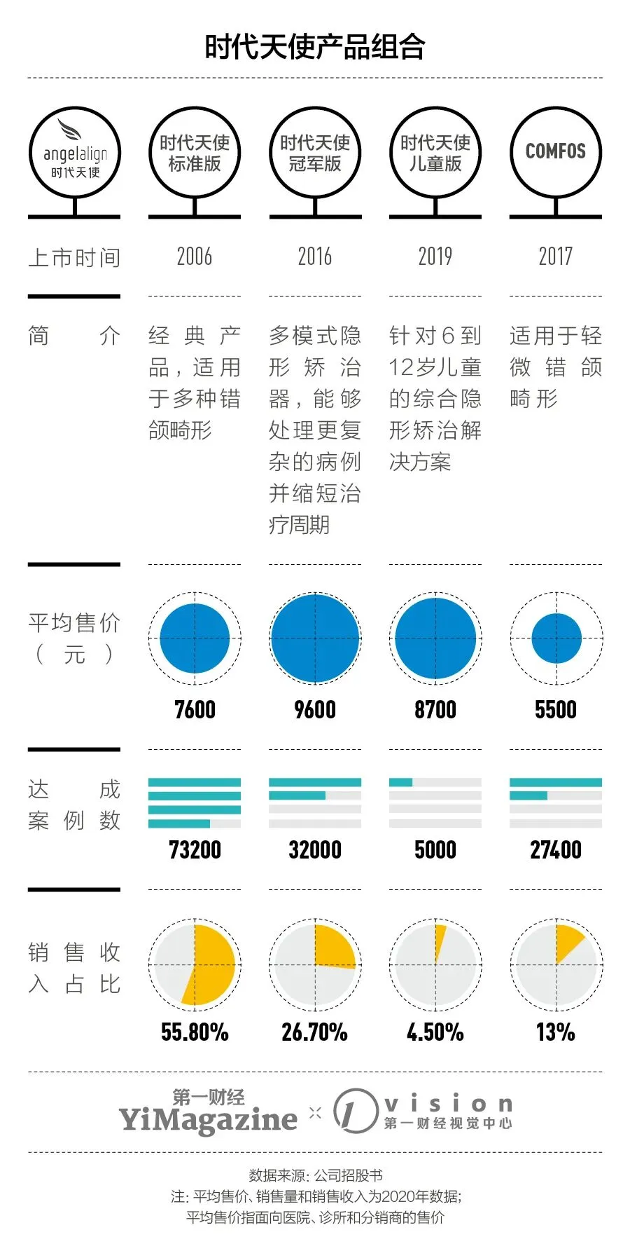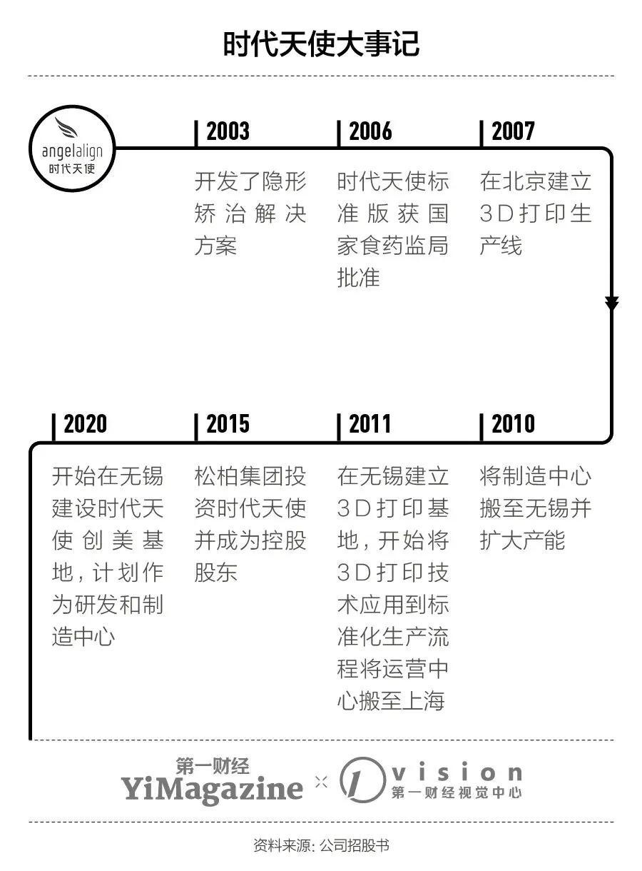 2003年,时代天使创始人之一、现任CEO李华敏在帮助父亲管理口腔诊所时,了解到首都医科大学和清华大学的教授正在研发隐形矫治技术。她便和父亲一起出资、并邀请大学教授技术入股,成立了时代天使。自从2006年首款经典产品时代天使标准版上市后,这家公司连续四年亏损,要依靠口腔诊所的收入来补贴。时代天使并没有厘清定位的意义,还是把自己视为医疗器械商。这一定程度上让打开市场的过程变得有些困难。彼时,大部分中国消费者都不知道隐形矫治是什么,更不要说信任牙医推荐、甚至主动要求做正畸了。直到2010年,生物医疗领域的投资公司奥博资本向时代天使注资约660万美元。2012年,华平投资和奥博资本又向时代天使联合注资。“中国人对于牙齿保健和美观的态度的改变是巨大而迅猛的。”时任奥博资本亚洲资深董事总经理王健在接受媒体采访时提及,他对中国口腔医疗和美容市场未来的爆发很有信心。融资后,李华敏认为产品的定位需要改变,也选择了“医疗美容消费品”的路线。资金投入市场推广后起效很快,李华敏曾在2011年透露,2010、2011年时代天使的收入都有300%的增长;2015年,高瓴资本通过子公司成为时代天使的控股股东,持股比例为64.88% ,时代天使也在当年扭亏为盈。之后,时代天使相继推出了冠军版、COMFOS和儿童版三个新产品线,覆盖不同治疗难度、价格档位和年龄段。因此,公司最早的标准版产品收入占比由2018年的78%下降到了2020年的55.8%。隐形矫治器对消费者的好处在体感上显而易见:不影响外表、佩戴舒适、复诊时间灵活。这天然组成了吸引消费者的要点。2010年后,时代天使的成长也恰好赶上了社交媒体的进化。社交媒体繁衍出的海量意见领袖,对于医美内容的推广起到了关键作用。在小红书上搜索“隐形牙套”,有超过4万条笔记,搜索“时代天使”,有超过2万条笔记。在每个内容社区里,医美内容的套路与分工都是类似的——KOC(关键消费者)乐于分享正畸体验,贴出每个阶段的照片;KOL(关键意见领袖)分析不同矫治技术或矫治器品牌,或者干脆接受品牌投放;与审美或整容相关的博主主要讨论正畸对面容的影响;走向市场化的医生以知识权威的姿态,科普隐形矫治技术;容貌变化的图像,则刺激着用户的消费欲望。和起步时相比,如今更多中国消费者知道并能接受隐形矫治,下一步,则是他们在牙医面前选择哪个品牌的问题。尽管现在正畸与医美的关系日益密切,但不可否认,正畸仍然属于专业度颇高的医疗范畴。医院和诊所才是隐形矫治器品牌的直接客户,医生是品牌实际触达消费者最重要的媒介,消费者很大程度上会听从医生的建议。按照隐形正畸的基本流程,首先牙医会将患者的口腔数据同步到隐形矫治器品牌开发的系统平台,品牌方的医学设计师在此基础上制作三维模型和矫治方案,模拟治疗过程中的牙齿移动。方案经审核后传输给牙医,根据需要进一步修改。相较于传统的固定矫治技术,隐形矫治技术创造了一种新逻辑。传统治疗过程中,固定矫治技术要依赖牙医的经验判断和操作技术,且很大程度上是机械式的;隐形矫治技术则将大量设计与效果推演交给了系统,是数字化的。而且,这套系统会随着案例的积累而丰富数据库,让方案更准确。对于正畸医生来说,矫治器交给工厂统一生产,减少了弯钢丝、粘矫治器等椅旁操作的时间,同样时间内可以诊疗的案例数变多了。但他们要学习另一套数字化的正畸方法论,并在软件上设计、修改方案。隐形矫治品牌最希望牙医感受的好处,就是这种数字化辅助。因此,时代天使会强调产品并不只是“隐形牙套”,而是全套解决方案,比拼谁能更精准地满足牙医需求。谁让牙医的诊疗效率提升到极致,牙医也就更青睐谁的产品。