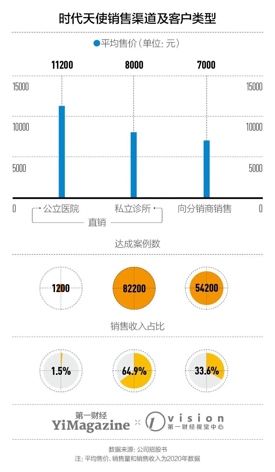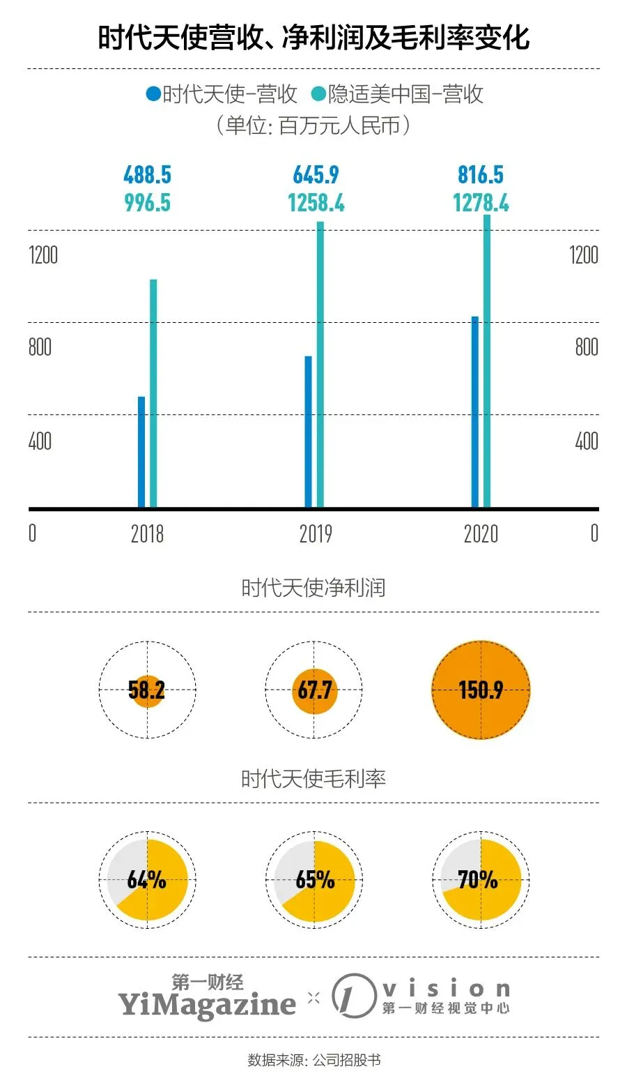 2018年到2020年,时代天使认证的牙科医生数量从约11500位增长到2020年的19900位。事实上,不少增量来自于全科牙医。正畸是本科阶段后才选择的专业学习方向,而全科牙医是可以诊断、治疗和管理患者整体口腔保健需求,但没有经过专门正畸培训的牙医。时代天使引用灼炽咨询报告数据称,2020年中国每10万人有0.4名正畸医生和19.5名全科牙医,这两个数据在美国是3.3和47.8。正畸医生数量不足,隐形矫治器品牌自然将动力落到了规模更大的全科牙医身上。这时品牌希望软件和服务实现的不仅是辅助,更是补足牙医的能力。时代天使在招股书中特别提到,“即使他们(全科牙医)并不专攻正畸,但仍可以熟练地为患者提供隐形矫治服务。”因为人种导致的面型差异,中国复杂错颌畸形的患病率较高。东亚人种通常颌面微凸,而当前审美向欧美人的直面型靠拢,也就是上下唇位于鼻尖和下巴连线的稍后侧。时代天使因此特别强调,公司有自己的亚洲人种口腔医学数据库,和一系列针对性的解决工具和方案,这些都能方便中国医生治疗中国患者。背后真正提供矫治方案设计服务,并且和牙医沟通修改的,是时代天使内部的医学设计团队。根据招股书,时代天使医学设计团队近400人,超过了347人的销售及营销团队,据称是“由口腔医学专家团队领导”。对牙医的前期培训、认证,以及提交案例后的新产品培训、案例学术交流,也是品牌试图精进牙医技术,和维护牙医关系的方式。2017年起,时代天使和加州大学洛杉矶分校牙科研究服务中心合作,给牙医提供数字化正畸认证培训项目,和中国牙病防治基金会推出的育龙计划,把培训前置到了正畸学研究生。这场启动将近20年的正畸数字化革命并不是全然顺利。部分正畸医生曾告诉《第一财经》YiMagazine ,由大数据推演加上医学设计团队出具的初始方案,一般不能直接使用,要经过多版方案修改,依旧依赖牙医在正畸领域的专业度。这不仅代表了数字化的局限,也蕴含着正畸医生强调自身价值的微妙情绪:不能被计算机所替代,不想被全科牙医所稀释。招股书显示,时代天使的销售渠道分为直销和分销。直销面向公立医院和私立诊所,其中私立诊所的收入贡献处于压倒性地位,而公立医院的收入贡献在近3年连续下降。口腔科是国内最早市场化的专科医疗之一。高附加值的正畸、种植、洁牙等项目也是民营口腔诊所业务增长的动力。2018年到2020年,一家全国连锁的医美集团一直位列时代天使的前五大客户中。在尚未开发的区域,时代天使选择通过分销商来触达公立医院和私立诊所。由于熟悉区域市场的环境,掌握本地资源,这些分销商得以维系分散市场的中小型客户。从2018年到2020年,时代天使分销商销售的收入占比从11%上升到33.6%。医美消费品的特性,要求让隐形矫治品牌对诊所输出的不只有产品,还有更多的针对性市场服务,包括常规的促销、活动策划等新客引流项目,以及客户留存管理、咨询培训、学术会议支持等,根据合作等级有所不同。在一些合作深入的私立诊所中,时代天使设立了冠名隐形矫治治疗室。另外,时代天使将上海天智、上海君笑和广州盛世三个牙科诊所定位为区域示范中心,作为牙医定期培训和消费者宣传的线下场所。因为销售和营销费用的上涨,时代天使的净利率一度从2018年的11.9%下降到2019年的10.5%。公司必须同时考虑提升收入的“开源”,以及规模效应带来的“节流”。目前,时代天使在无锡建设的规模化矫治器3D打印自动化产线已经让矫治器的产能稳定,并摊薄了单位租赁成本及折旧。成本结构的优化,让时代天使的净利率在2020年又上涨到18.5%,已经和隐适美处于同一水平。不难发现,隐适美创造并验证了一套隐形矫治器的基本方法论。从隐形矫治器、软件系统的产品组合,到定位于医美消费品的市场推广策略,甚至还有“隐适美”这个巧妙的中文译名,都让它在消费者心中成为隐形矫治的代名词。随着隐适美专利到期、其他团队的技术攻关,以及本地牙医的整体水平提高,隐形矫治器的竞争点已经逐渐从技术壁垒,更多地转移到市场拓展与服务上。对于后者,时代天使等国产品牌相对具备本土作战优势。根据时代天使在招股书中所引用的灼炽咨询报告数据,它和隐适美在中国的市场份额咬得很紧,分别为41.0%和41.4%。而按照年报数据,隐适美2020年在中国市场的营业收入约为12.8亿元人民币,较时代天使的8.2亿元还有一定优势。