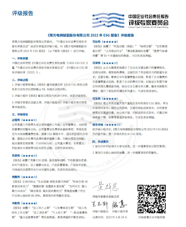 (《南方电网储能股份有限公司2022年ESG报告》评级报告)