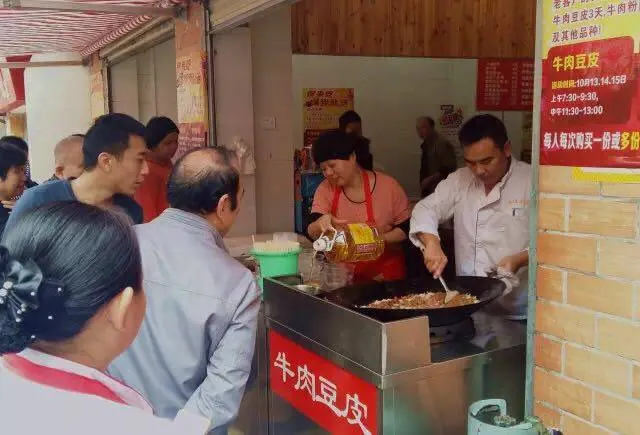 武锅拆迁过后,这家豆皮便搬到了现在地方,十几年的老街坊们吃惯了这碗豆皮,从武锅一路追随到静安路。