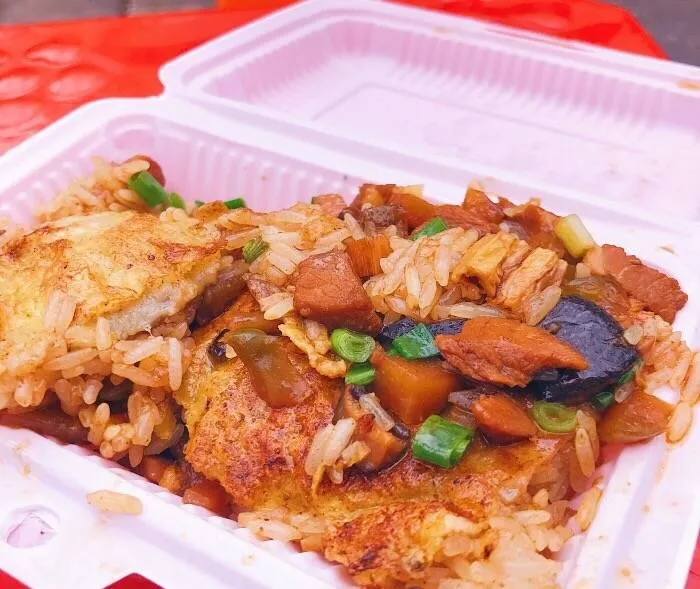 5元一份的豆皮很是花了些成本。肉丁很是舍得放,焦黄的皮子看着就养眼,糯米也入味,咸香适口。