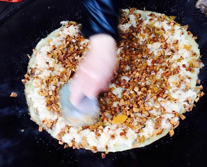 味美香是广埠屯这带很有名的豆皮,经常有美食节目报道,上过电视。老板已经习以为常,手艺是祖传的,现在到了他这里。