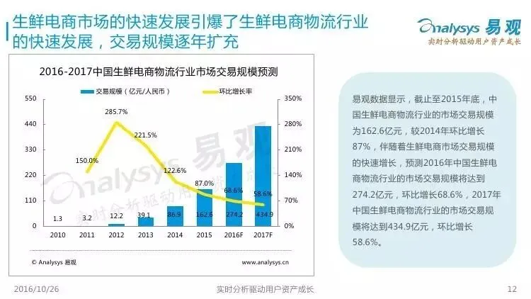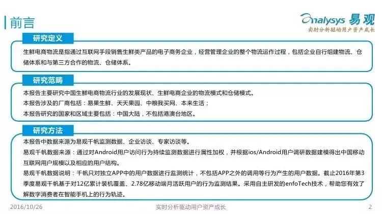 近日,易观智库发布中国生鲜电商物流行业专题报告,报告从中国生鲜电商物流行业发展现状、仓储模式、典型代表企业分析、行业发展趋势全面解构整个生态。
