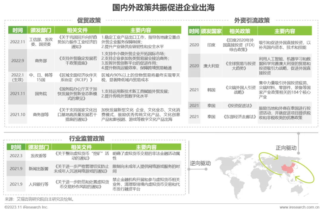 促贸政策与外资引流,企业主动出海;行业管理政策驱严,企业被动出海