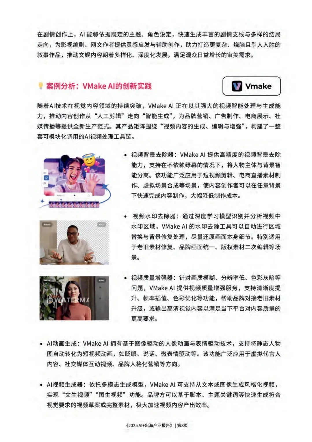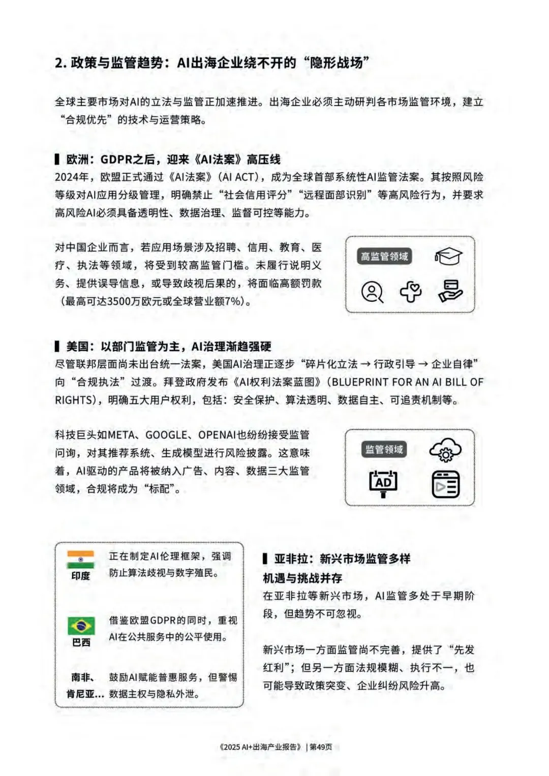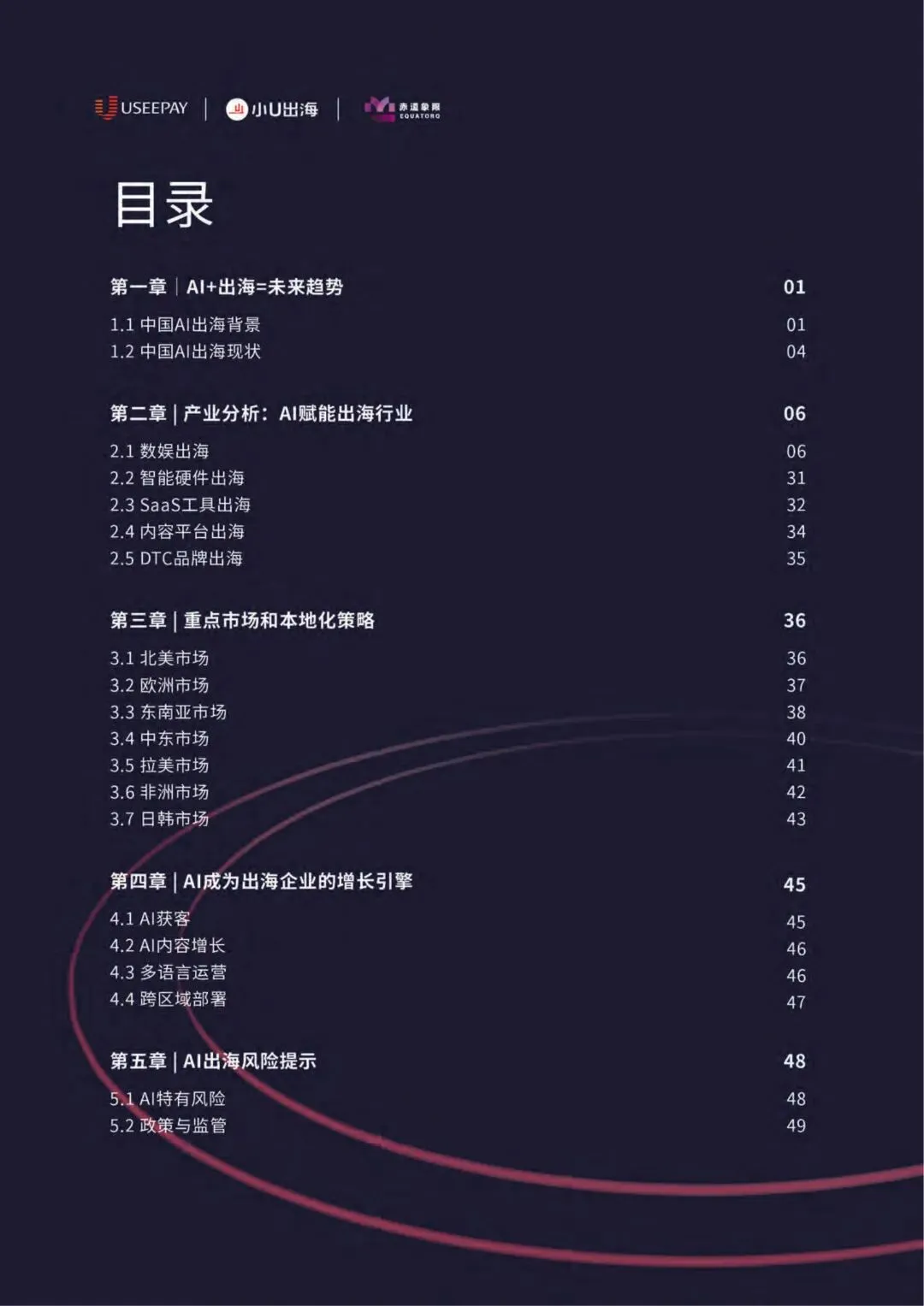 本报告旨在探讨AI赋能下的“出海”趋势,为中国企业提供战略指引、市场洞察及落地实践框架。通过研究多个重点行业与市场,结合成功案例解析与风险提示,帮助企业识别出AI出海的关键路径与价值抓手,从而在全球化浪潮中乘风破浪。