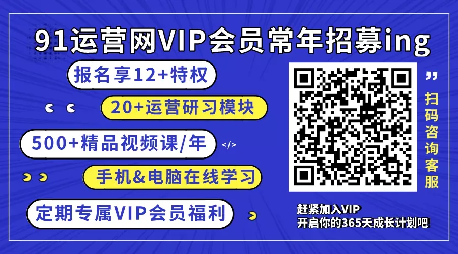 学习更多运营课程,欢迎加入已有10000+会员《91运营网VIP》。点击阅读原文了解详情,开启365天运营蜕变之旅!