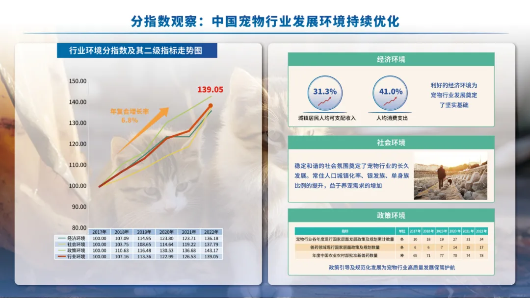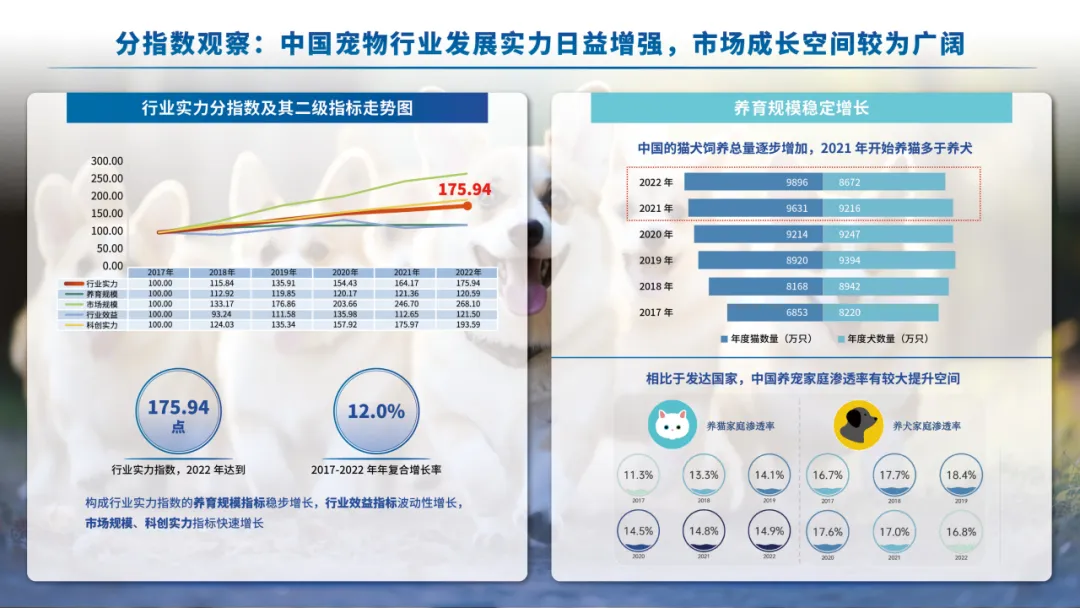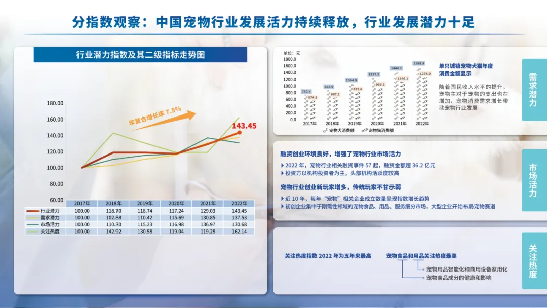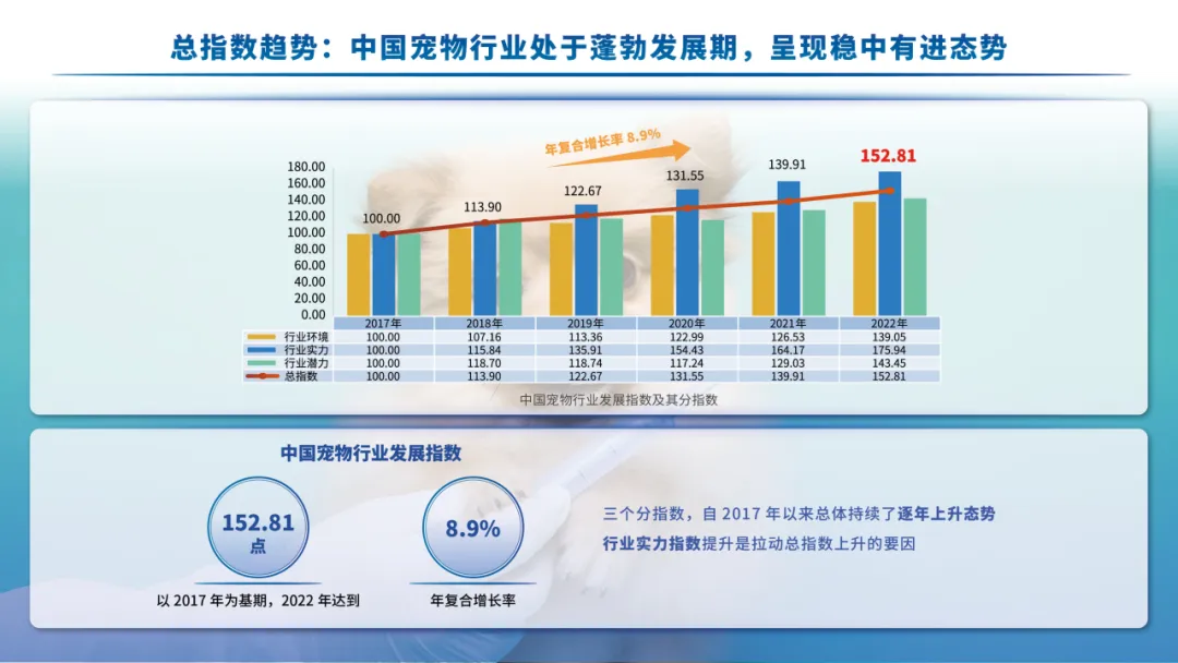为进一步推动宠物行业从高速发展向高质量发展转变,助力我国从宠物行业大国向宠物行业强国转变,赣州大健康宠物科学研究院联合新华社中国经济信息社,以全新视角研发、编制与发布全国首支宠物行业权威发展指数——“中国宠物行业发展指数”,旨在通过指数化方法客观评价、量化展现中国宠物行业发展水平,呈现行业发展全貌,记录发展轨迹,研判发展趋势,打造我国宠物行业运行的“晴雨表”和“风向标”,以高质量研究成果助力行业高质量发展,为实现人们对美好生活的向往添砖加瓦。