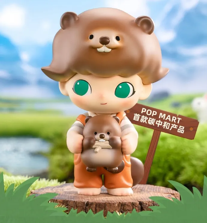 图:DIMOO蒙新河狸,与泡泡玛特50-70元区间的手办同样大小,但售价199元。限量7800个。这似乎是人类目前为止把“碳中和”属性卖出最高溢价的产品。| 图片截取自泡泡玛特官微