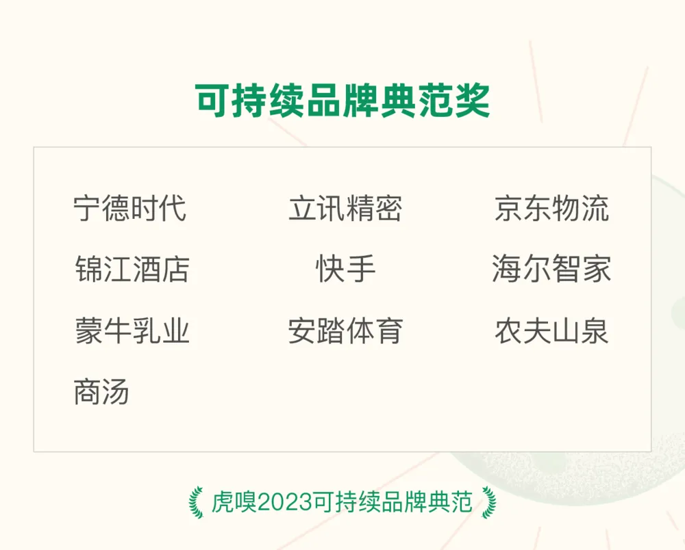 本着对ESG实质性进展的关切,下半年虎嗅开展了“可持续品牌典范”的评选,寻找今年在ESG领域创造了实质价值、值得市场和公众关注的中国企业。我们结合了ESG数据筛选、案例分析和专家评委投票三种方式,首先评出了10家在近两年、尤其在2023年进展显著的企业。