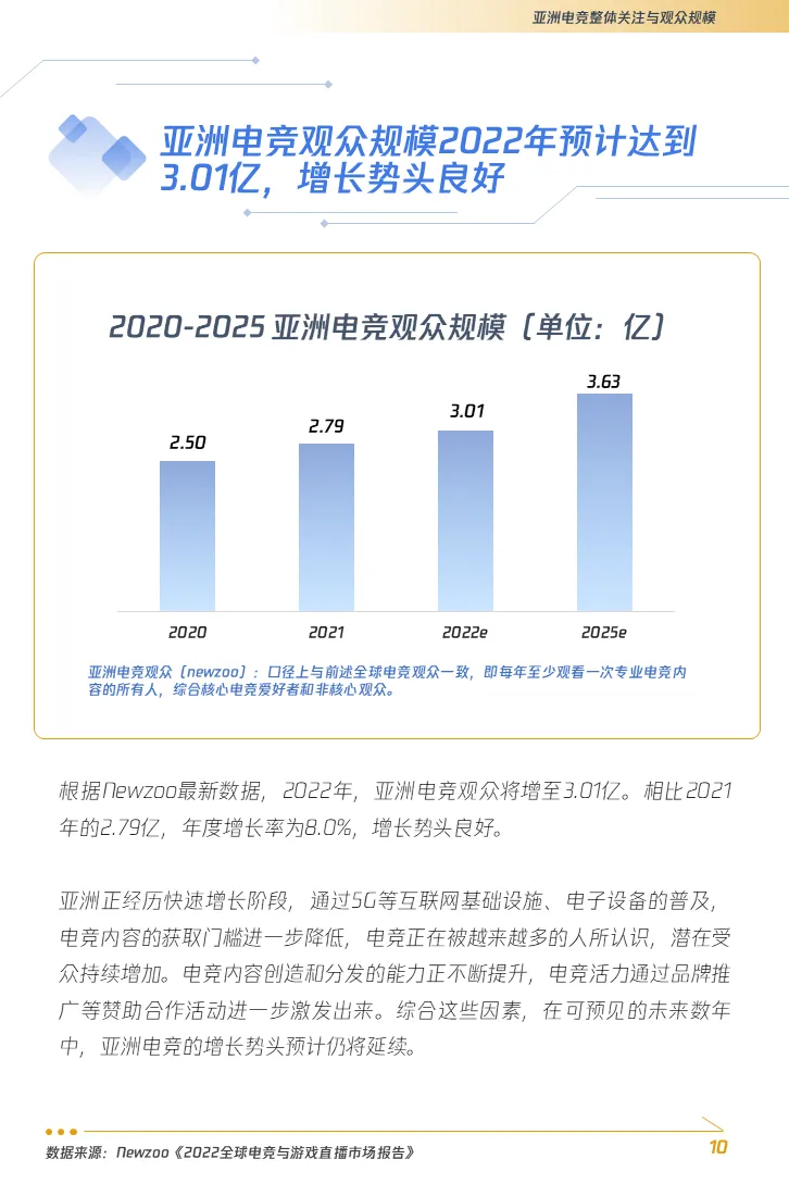 过去六年里,我们见证了电子竞技在整个亚洲地区的发展变化。成为杭州亚运会的正式比赛项目后,亚洲电子竞技市场迎来了新一轮增长。