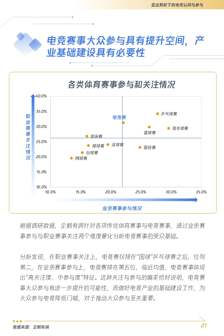此次企鹅有调联合腾讯电竞、亚洲电子体育联合会(AESF),提前协同部署,重新整合研究资源,综合运用用户调研、舆情洞察、专家访谈等多重定量定性研究方法,最终共同完成了这份《2022年亚洲电竞运动行业发展报告》。