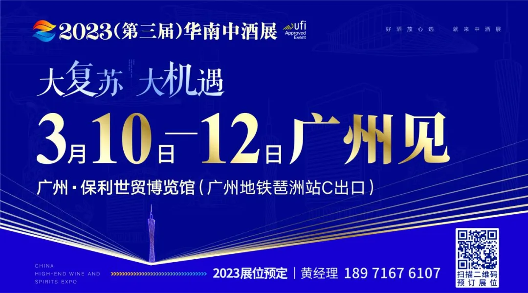 3月10-12日,第三届华南中酒展即将在广州·保利世贸博览馆举办。2万平方米展出面积,200+参展企业,1000+参展商品,将吸引10000余户专业经销商观众到场参观选品,展会同期还将举办10+场重磅论坛,100+行业领军人物、咨询专家、跨界大咖也将莅临展会现场,共同开启酒行业的开年首展。