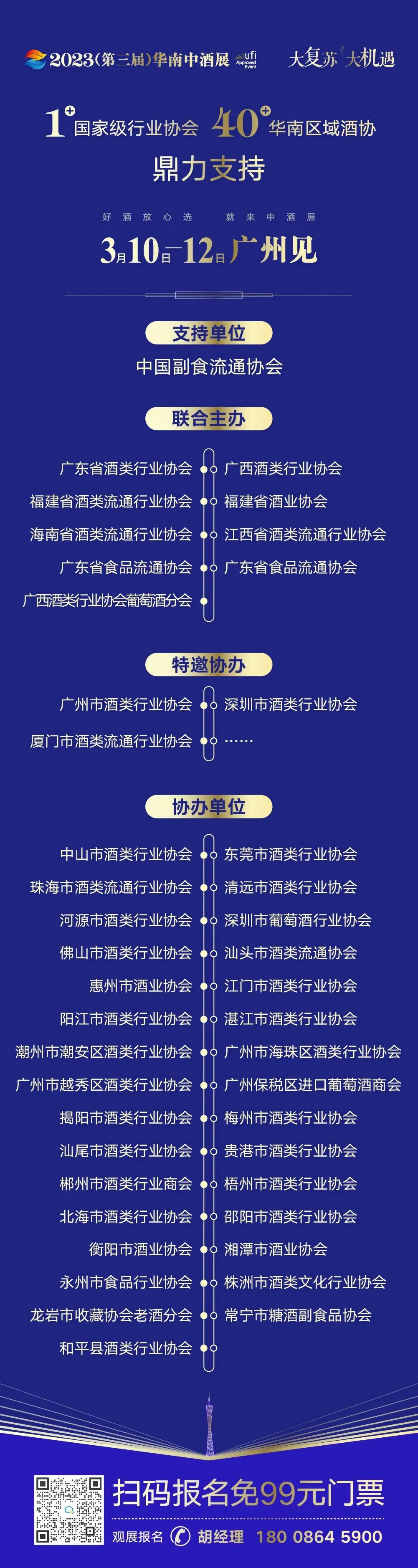 本届华南中酒展得到了1家国家级行业协会和43家华南区域酒协的鼎力支持。