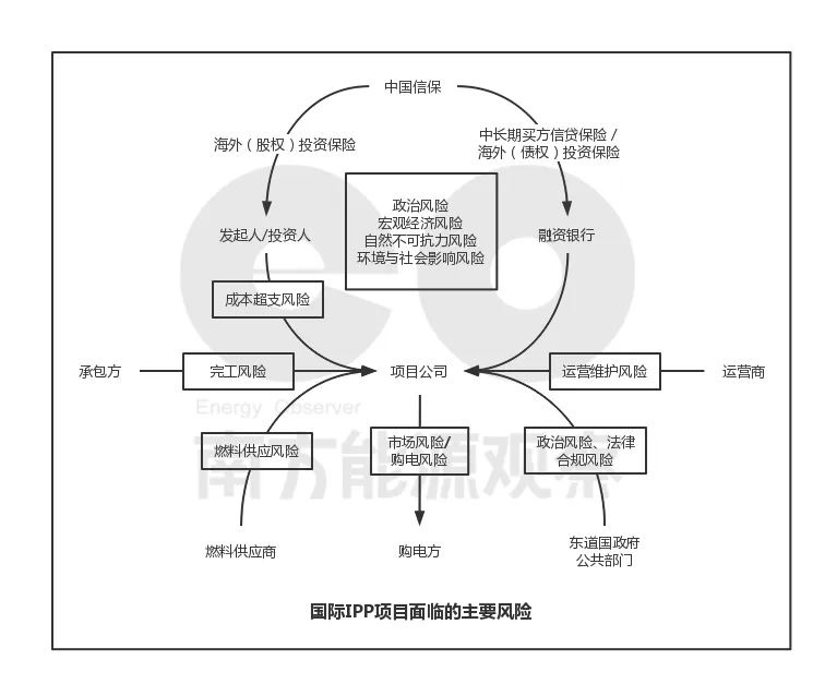 此外,IPP项目也面临着其他风险,银行会采取针对性的风险控制手段。例如,针对合规风险,融资银行和信用保险机构会要求项目投资人做出廉洁承诺,按期提交反洗钱材料,严格遵守项目所在国法律法规及行业准则等。针对安保风险,融资银行会结合项目所在国和项目所在地区的安全局势,提出安全保障要求,并请保险顾问对项目资产及从业人员提出投保建议等。