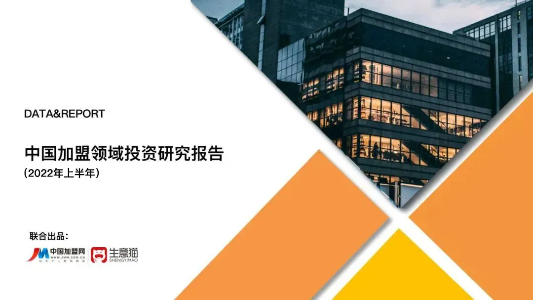 2022年上半年中国加盟领域投资研究报告由生意猫数据研究院、加盟网联合推出。本报告根据百万级加盟数据样本以及20万+人工调研数据整理、分析研究得出,供加盟投资创业人群以及加盟领域品牌参考。