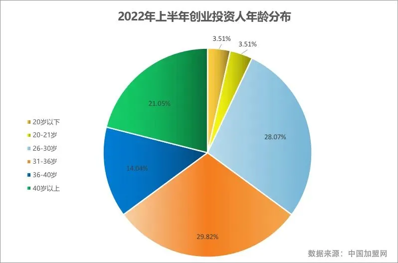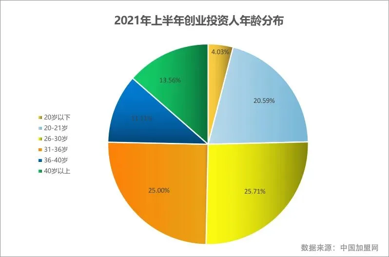 从2021年上半年的对比数据中我们可以看出,31-36岁加盟投资人群增长较大,占比达到29.82%,同去年同期相比增长19.3%。