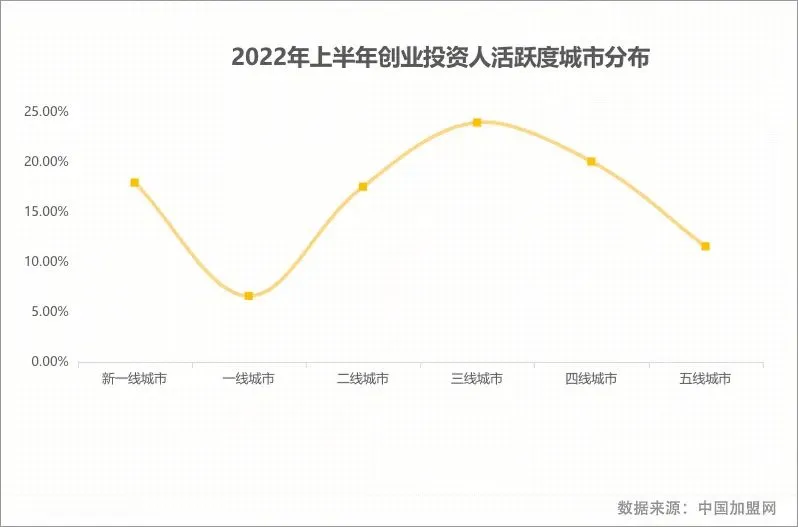 此外,根据数据显示,一线城市创业投资人比例有所回落,更高的机会成本和更加激烈的竞争环境,使一线城市的创业投资人在项目选择时更加趋于理性。2022年上半年,在疫情的影响下,一线城市的失业率明显,就业难问题加剧,所以城市的返乡人流增长明显,形成人才下沉回流趋势。而地方创业发展空间大,成本投入低,带给创业投资人的压力相对较小,开店更容易盈利,同时又能够快速的缩短回报期,因此,回乡创业的人群比重有了明显的增加,创业投资人数上升。