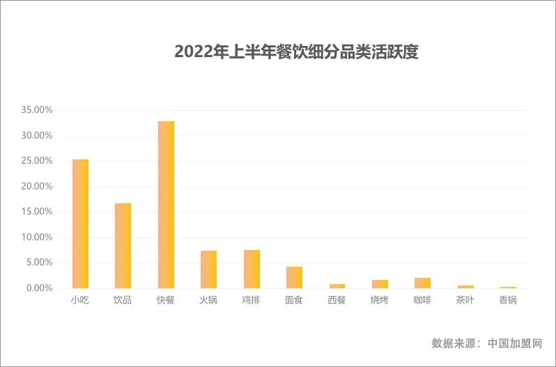 在餐饮细分行业中,2022年上半年小吃、快餐、饮品三大品类以市场大、投资小、经营广等优势吸引的加盟投资目光是最多的,同时也是收获资本市场关注最多的,据不完全统计2022年上半年,三大品类的投融资品牌超过20家,这就足以看出,小吃、快餐、饮品三大品类的发展态势及市场价值。